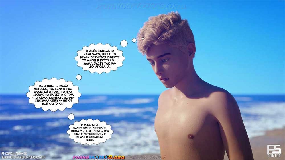 Порно комикс Нагишом. Нудистский курорт. Часть 18. Дилан по-прежнему пытается свести вместе совою мать и тетушку Келли, чтобы они, наконец, смогли поговорить и объясниться, но у него пока ничего не получается. Между тем, одна из симпатичных островитянок предлагает ему помощь в этом деле…