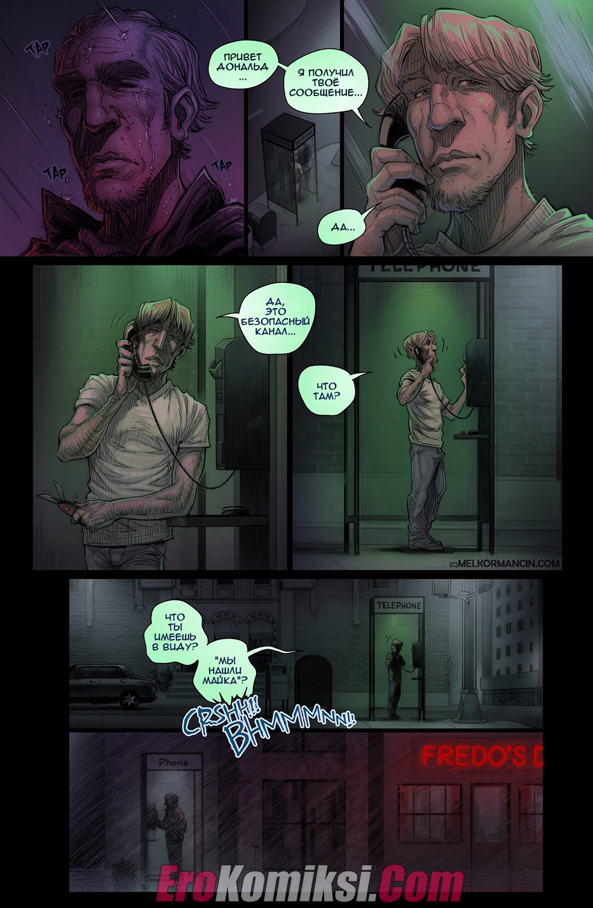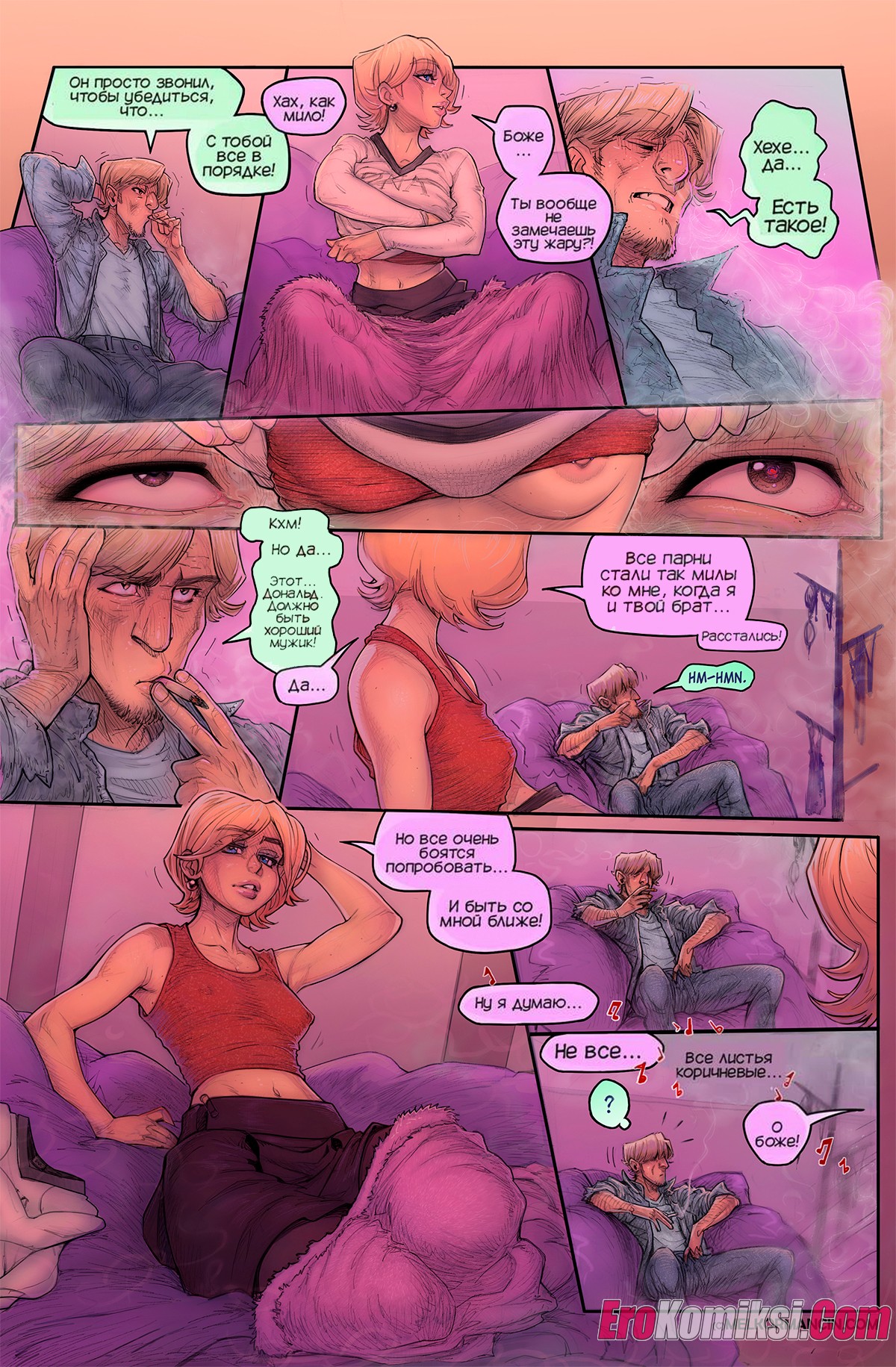 Секс комикс О девушке. About a girl. Melkor Mancin Парнишка приехал к своей подруге на новоселье. По дороге он прикупил фруктов, чтобы хорошо провести с ней время, но внезапно раздался телефонный звонок, который их потревожил..