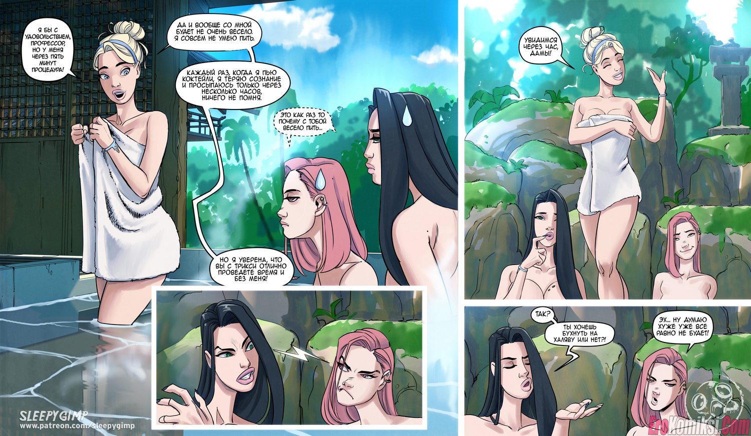 Секс комикс Выходные Ненси. Две развратные сучки с крупными дойками и любительницы БДСМ-развлечений отдохали в спа-салоне и нашли новую сексуальную жертву…