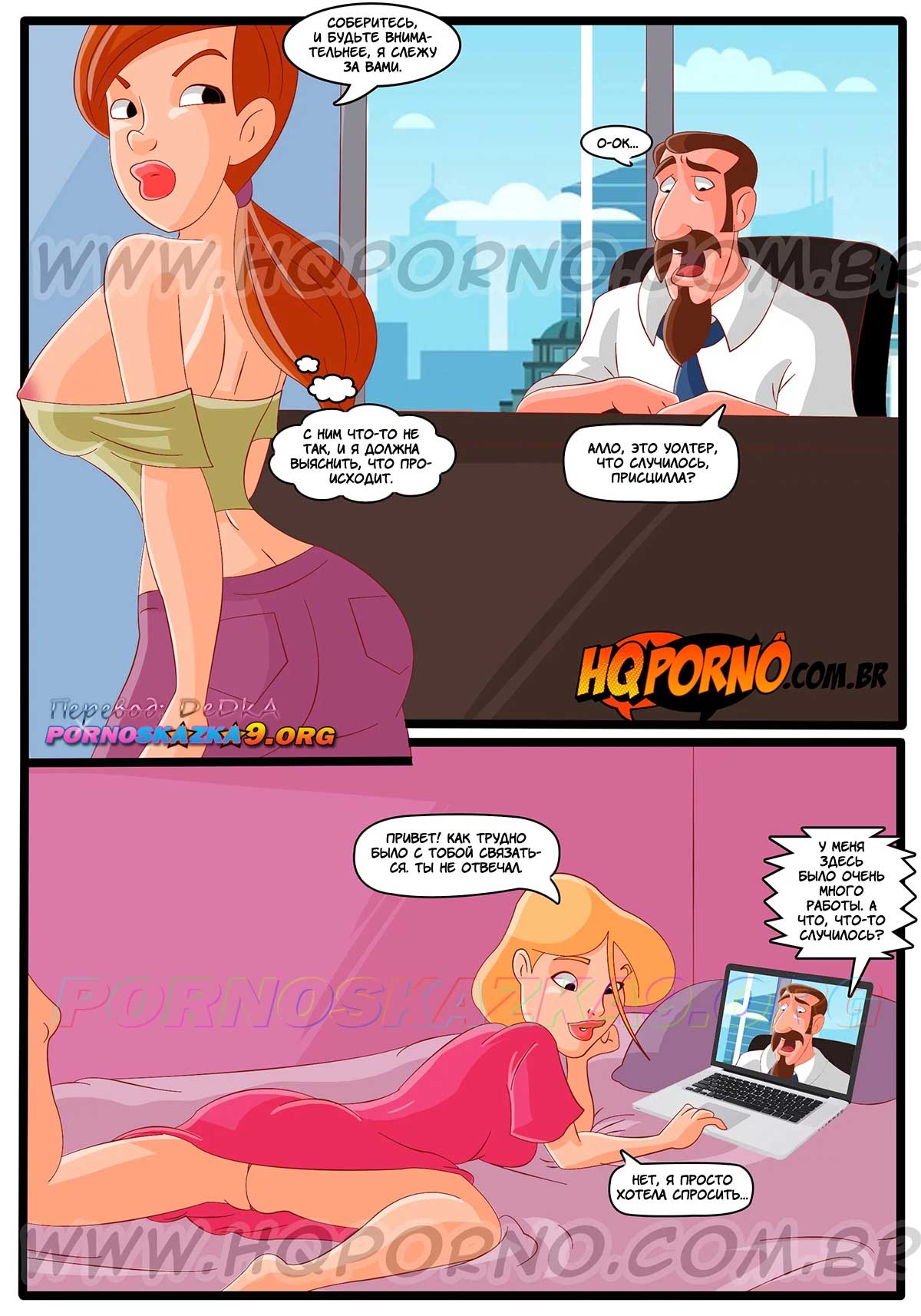 Секс Гулящая семейка. Часть 5. Как раз в то момент, когда Уолтер начал трахать Розу, Присцилла звонит ему по видеосвязи. Поэтому, чтобы Присцилла ничего не заподозрила, Уолтеру пришлось быть очень изворотливым…