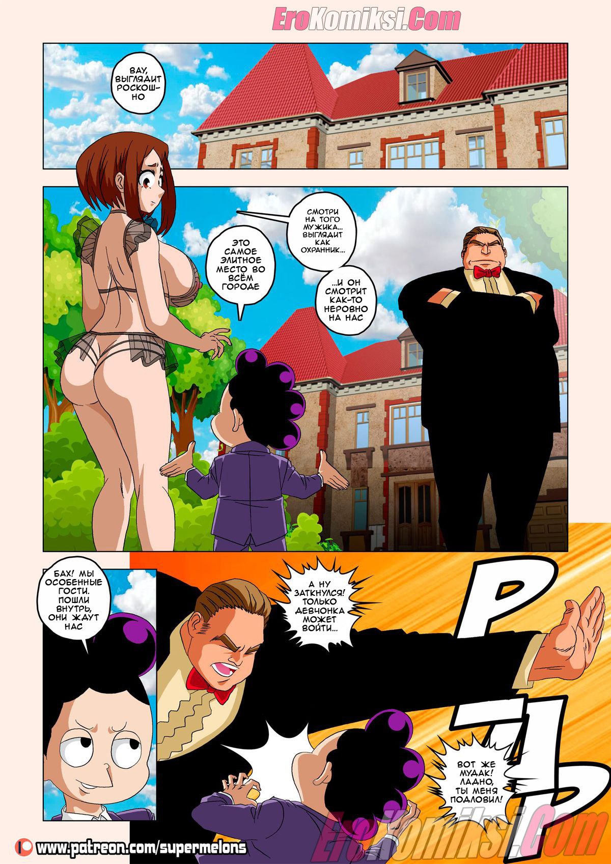 Секс комикс Академия. Вернуться домой. Back Home. Super Melons Горячая сисястая брюнетка поехала домой, используя выходные в академии. Там она застала свою сексуальную мамку за еблей с левым мужиком, после чего она узнала, что у ее семьи проблемы с деньгами.