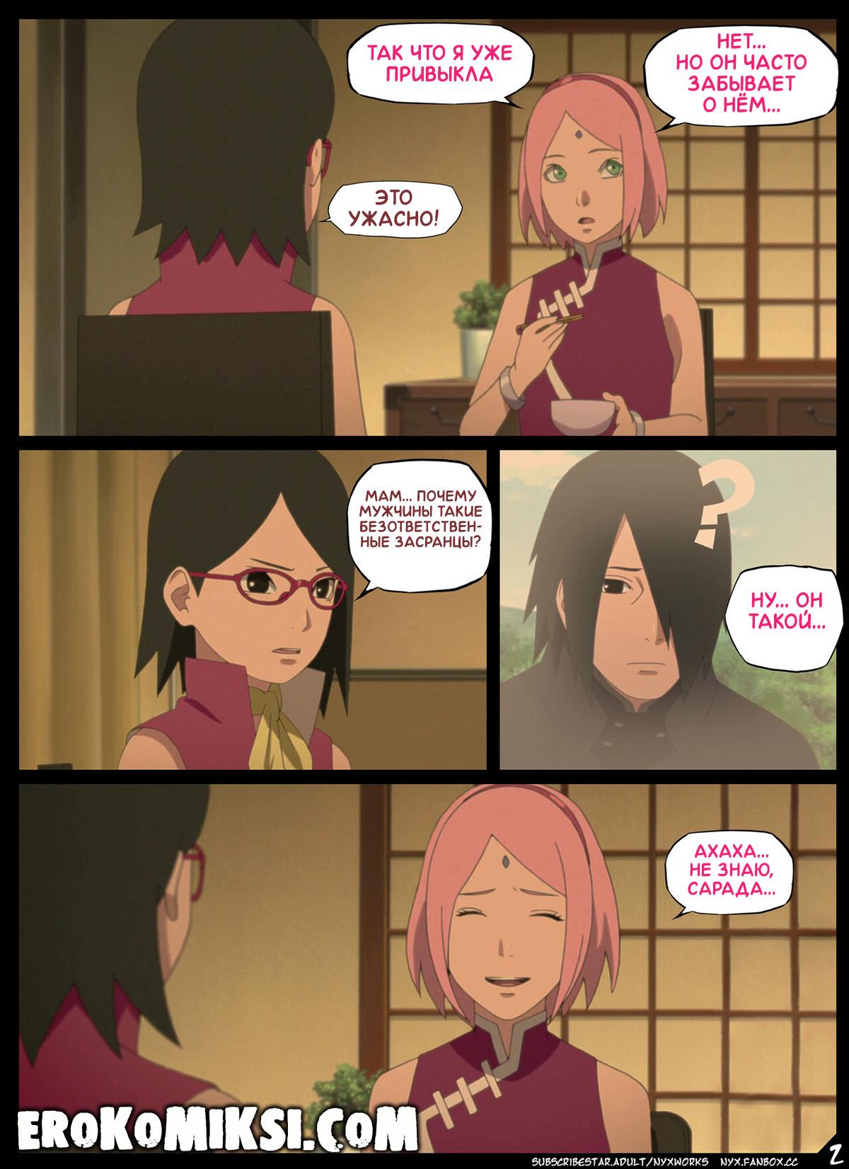 Секс комикс Боруто. Забытый День Рождения. В свой день рождения, Сарада сидит со своей мамой Сакурой и переживает, что все позабыли о её дне рождения и никто её не поздравил. Но под самый вечер, в гости к Сараде всё же пришли Боруто и Каваки. Парни забыли купить подарок, но Боруто решил поздравить свою подружку качественным сексом. Сарада разозлилась на Боруто и заявила, что её будет трахать Каваки, ну а чтобы Боруто не скучал, Сакура обещала хорошенько о нём позаботиться…