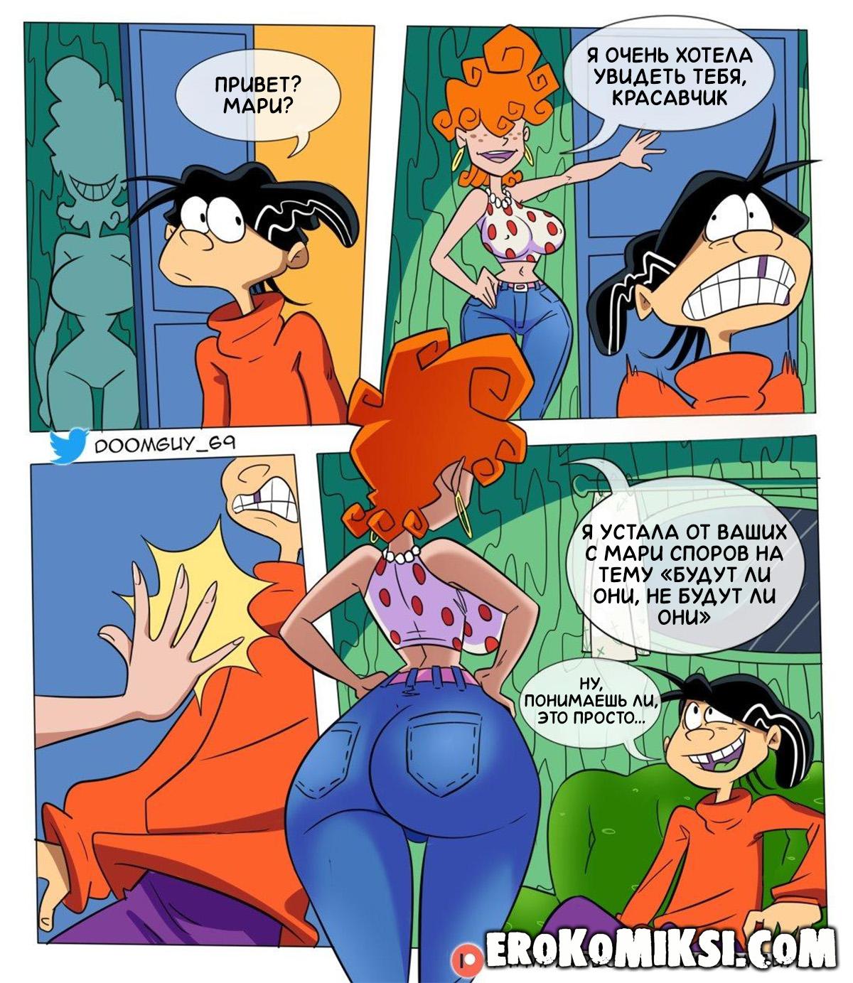 Секс комикс Эд, Эдд и Эдди. Горячие сёстры Канкерс. Ли отправила Эдду письмо от имени Мари, с просьбой прийти, а сама отправила сестёр подальше из дома. Придя к Мари, Эдда встретила Ли и принялась его соблазнять, она как следует ему отсосала и поскакала на его члене, получив порцию горячей спермы. В это время, вернулись Мари и Мэй, которые были тоже не против поразвлечься с большим членом паренька…
