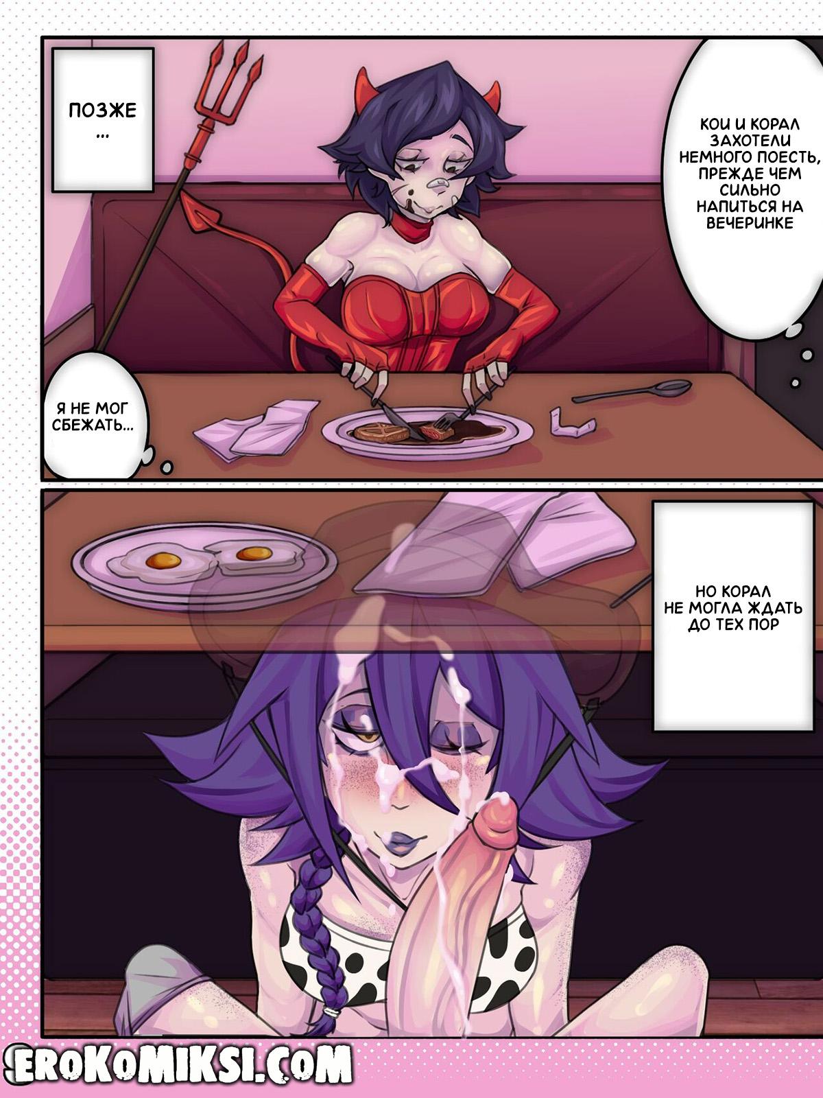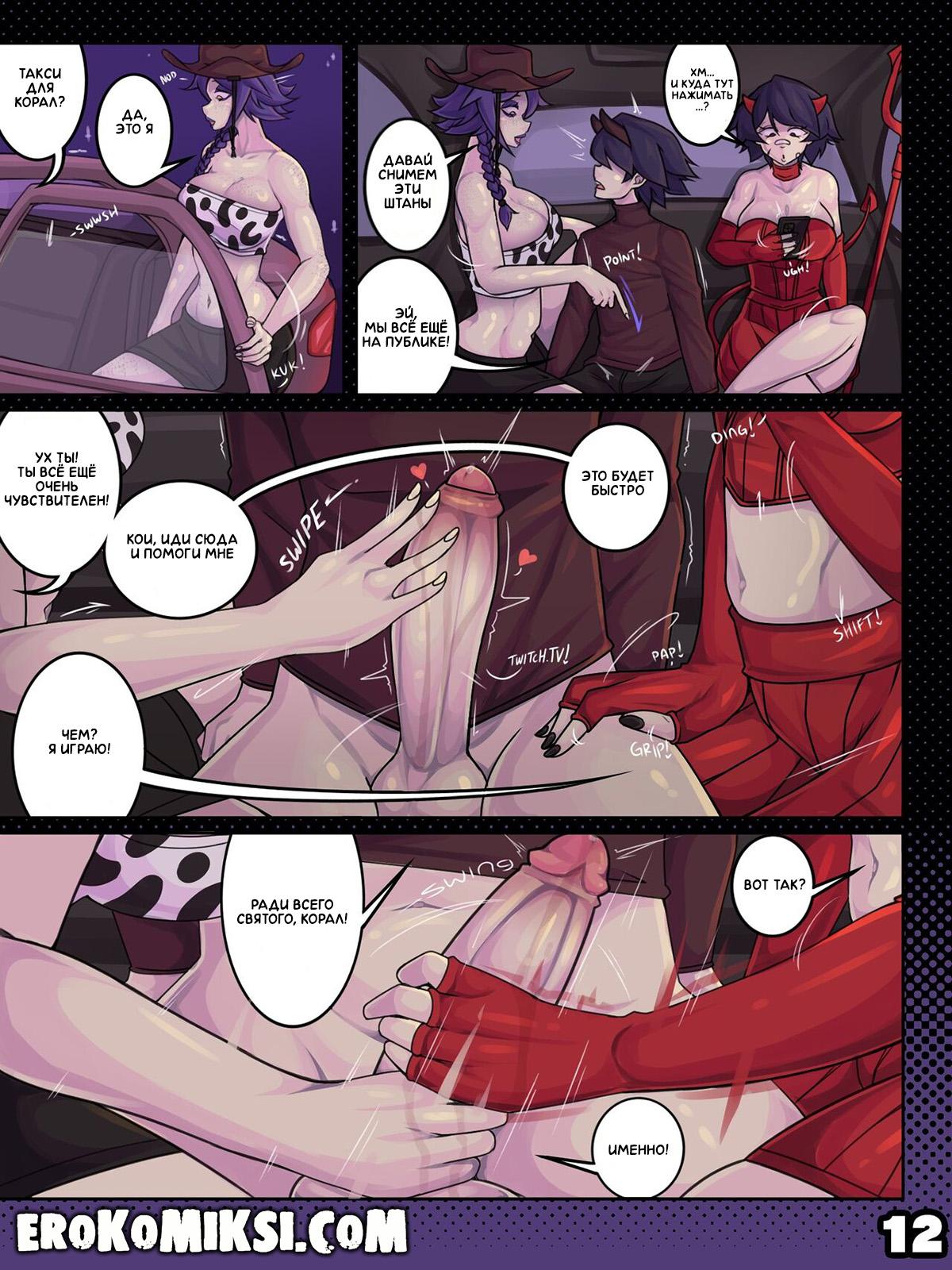 Секс комикс Ферма тёти. Горячая вечеринка. Корал и Марина днями напролёт выдаивают сперму из члена Финна и совсем не дают пареньку прохода. Сегодня вечером намечается вечеринка и Корал с Кои и Финном отправляются на такси в указанное место, где их уже ожидает Марина. По пути на вечеринку, Корал и Кои как следует разогревают огромный член Финна, но не дают ему кончить, так как всё самое интересное ожидает паренька на вечеринке…