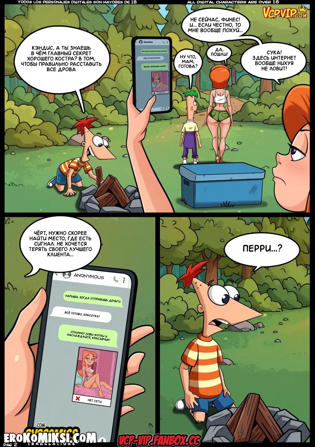 Секс комикс Финес и Ферб. Семейные Тайны. Братаны Финес и Ферб, вместе с мамой Линдой и сестрой Кэндис отправляются в туристический поход, а это значит, что у братьев будет потрясающая возможность как следует потрахаться с сексуальными красотками…