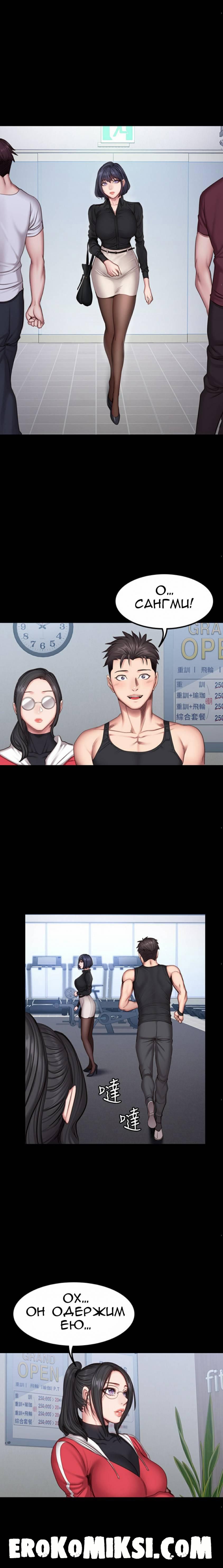 Секс комикс Фитнесс. Часть 27. Без цензуры!!! Увидев Хенсу, Сангми сломя голову бежит домой, не дав парню ничего сказать. Хенсу корит себя за случившееся между ними и считает, что не должен был её трахать. Сон-Чжу предлагает Хенсу кандидаток на роль нового фитнесс тренера, так как в зале стало заниматься много мужчин. Сангми приходит на занятие, но игнорирует Хенсу, а сразу идёт к своему тренеру, Донг-Джуну…