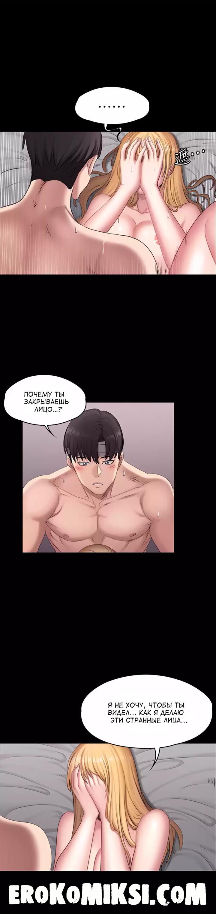 Секс комикс Фитнесс. Часть 63. Без цензуры!!! Хенсу трахает Лею раком и девушка сильно возбуждена от большого члена в её киске, но ей мало и закрыв лицо руками, она просит проникать глубже и трахать её жёстче. Хенсу не понимает почему Лея закрывает лицо, а она просто не хочет чтобы он видел различные гримасы на её лице, на что Хенсу убирает её руки от лица, чтобы наслаждаться её красотой…