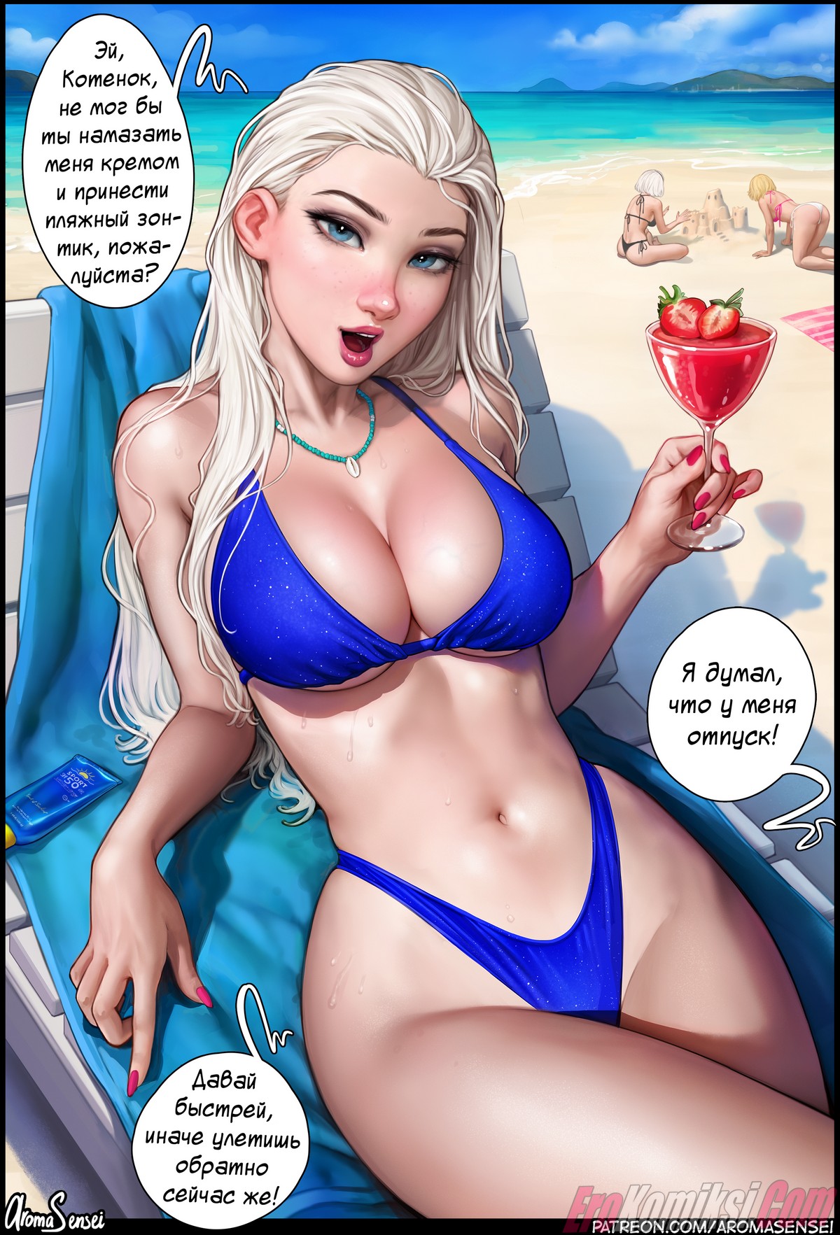 Секс комикс Горячий отпуск в Frozen Inc. Aroma Sensei. Вашему вниманию представляем отличный комикс, где Эльза покажет вам все сокровенные места своего прекрасного тела…