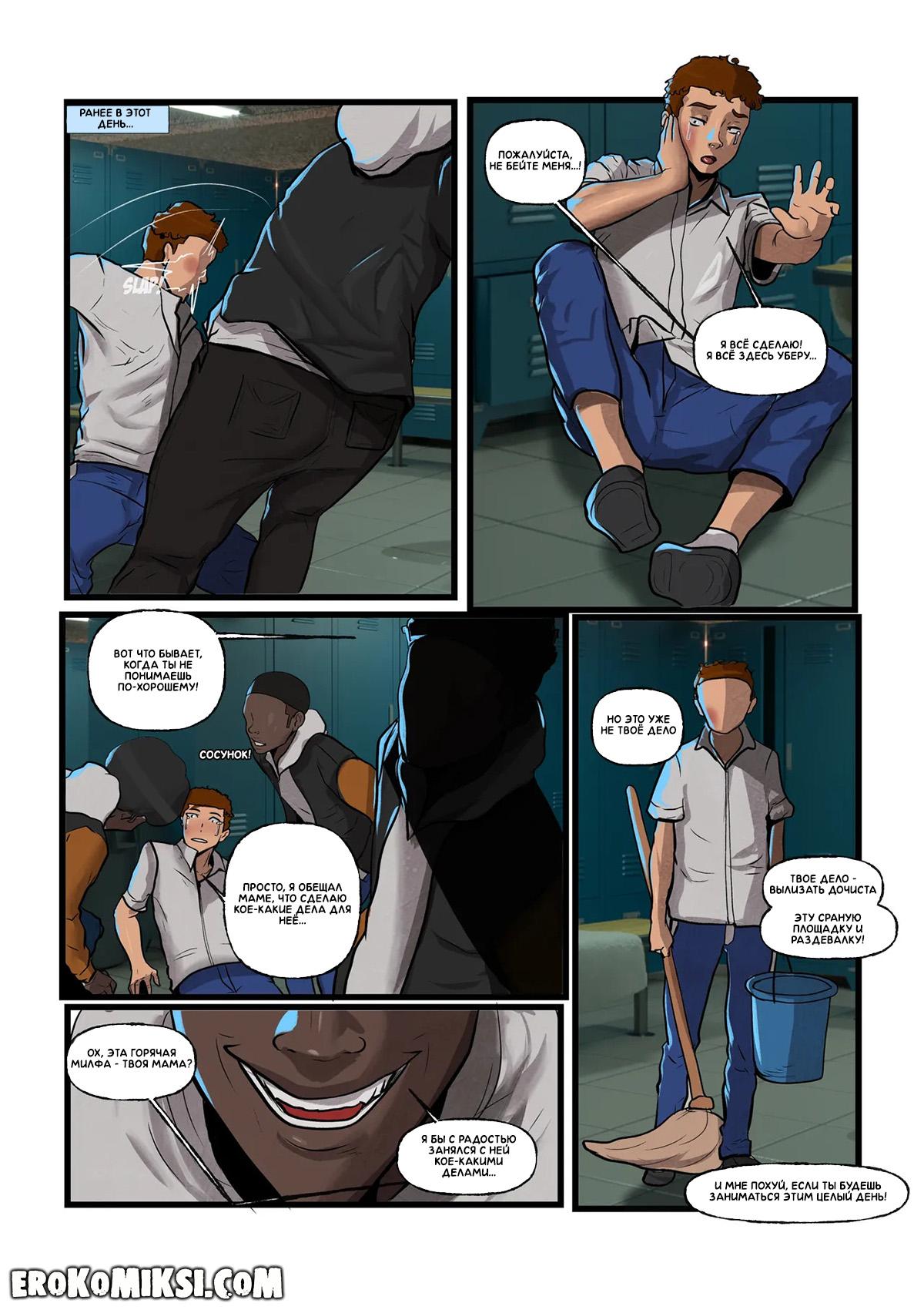 Секс комикс Хулиганы. Часть 1. Дре приходит к маме Стивена, Кармен и рассказывает ей, что её сыночка буллят в школе, и он готов заступиться за паренька, но взамен он просит, чтобы она подрочила ему своими огромными сиськами, и ради любимого сыночка, Кармен соглашается на условия подонка…