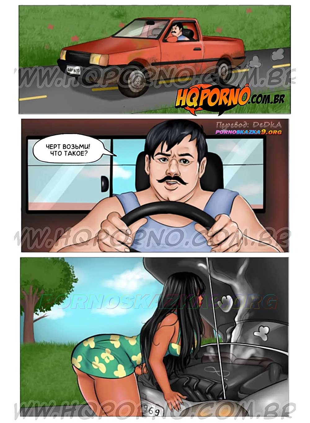 Секс комикс Инцест на ферме. Часть 10: Долгий ремонт. Раймундо встречает на дороге парочку, у которой проблемы с машиной, и решает помочь им. Особенно он хочет помочь красотке, которую зовут Валерия. Это та самая распутная Валерия из «Приключений Валерии», она очень ласково просит у Раймундо помощи…