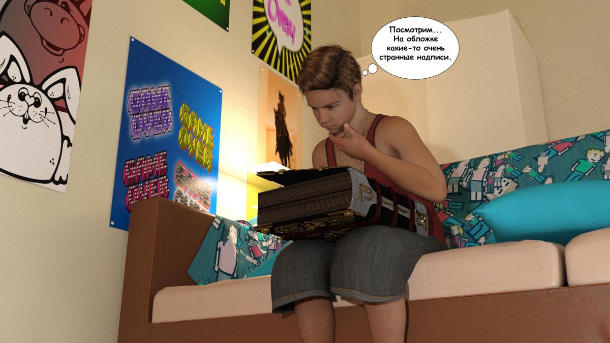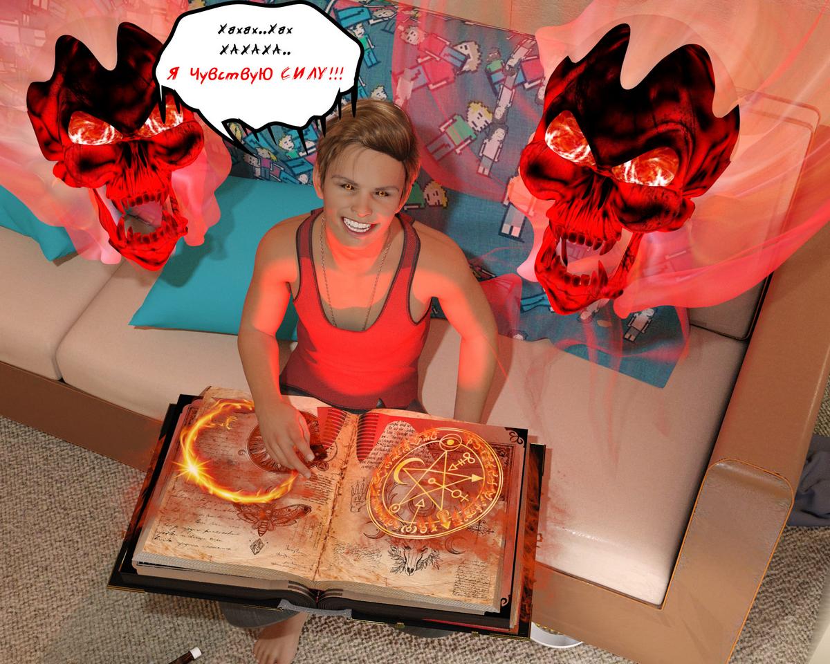 Секс комикс Книга зла. Часть 1. Обиженный на жизнь и отца парень во время прогулки находит не обычную книжку решив забрать её домой вся его и не только его жизнь координально изменятся. Каким образом? Это мы с вами сейчас и узнаем…