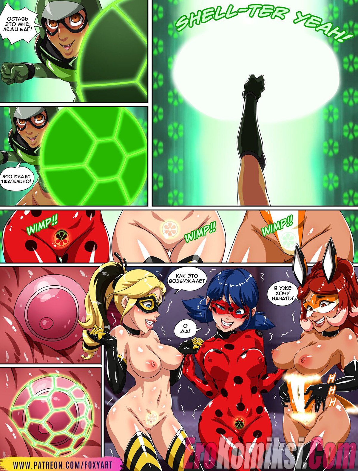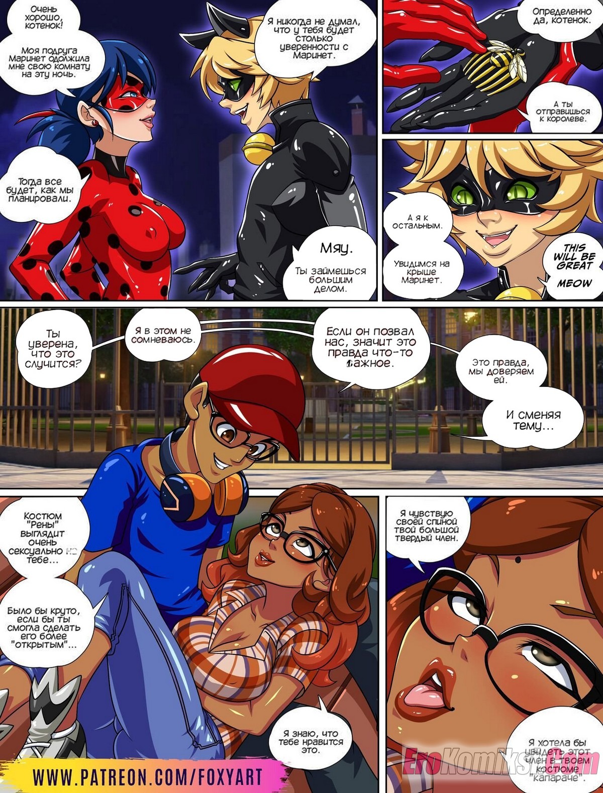 Секс комикс Леди Баг. Время дружеской встречи. Friendly Meeting Time. FoxyArt Горячая сисястая брюнетка Леди Баг решила повеселиться со своими друзьями. Они собрались все в одной квартире, чтобы заняться страстной групповой еблей и узнать предел своих сил.