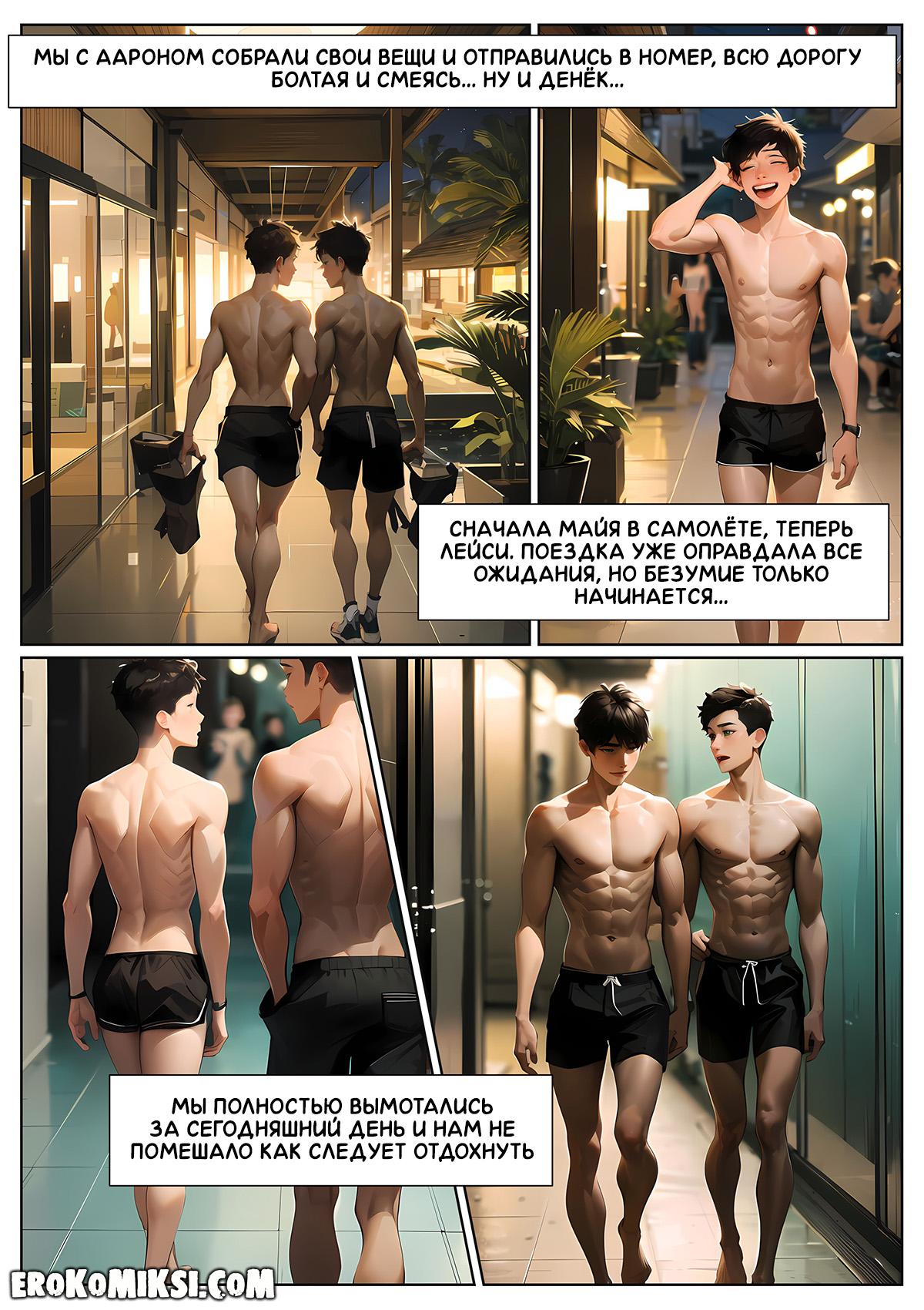 Секс комикс Летние каникулы Анона. Часть 3. Эпизод 2. Анон, Аарон и Лейси идут в сауну, где Лейси даёт парням как следует оттрахать себя и обкончать своё милое личико. После сауны, Аарон встречает в холле отеля сильно подвыпившую мисс Эрикссон, которая просит его проводить её в номер и уложить спать.