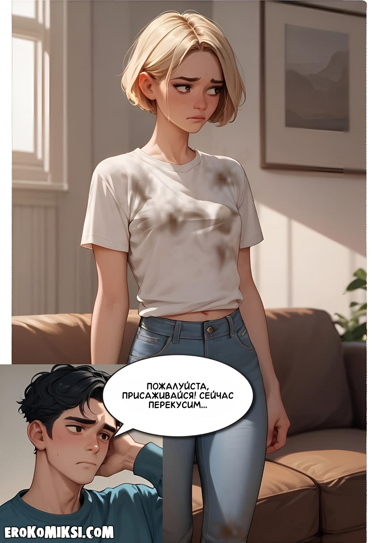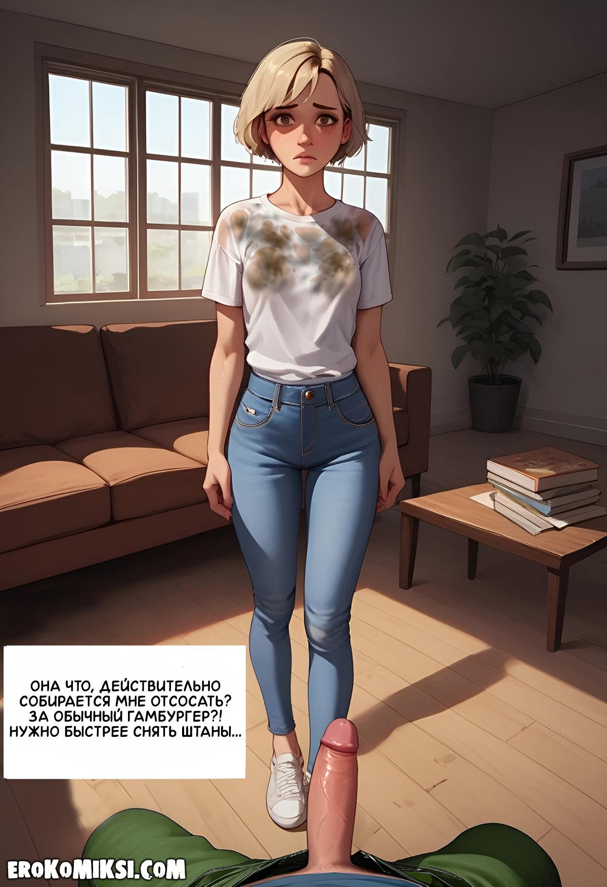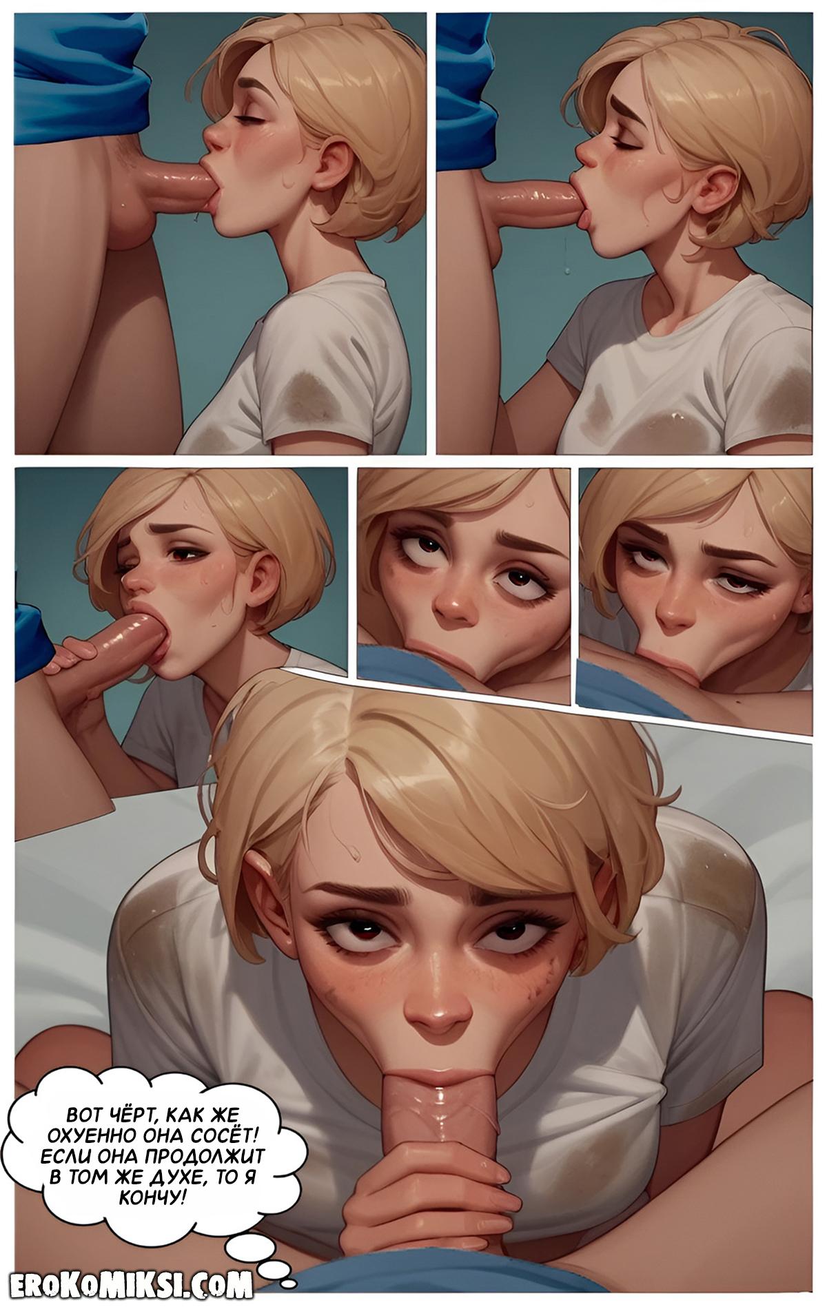 Секс комикс Моя бездомная подружка. Возвращаясь домой, Роман увидел бездомную девчонку Либну, и ему стало её жалко, поэтому, он пригласил её к себе домой, и накормил. Либна решила отблагодарить Романа, и отсосала его огромный член, и дала выебать свою киску…