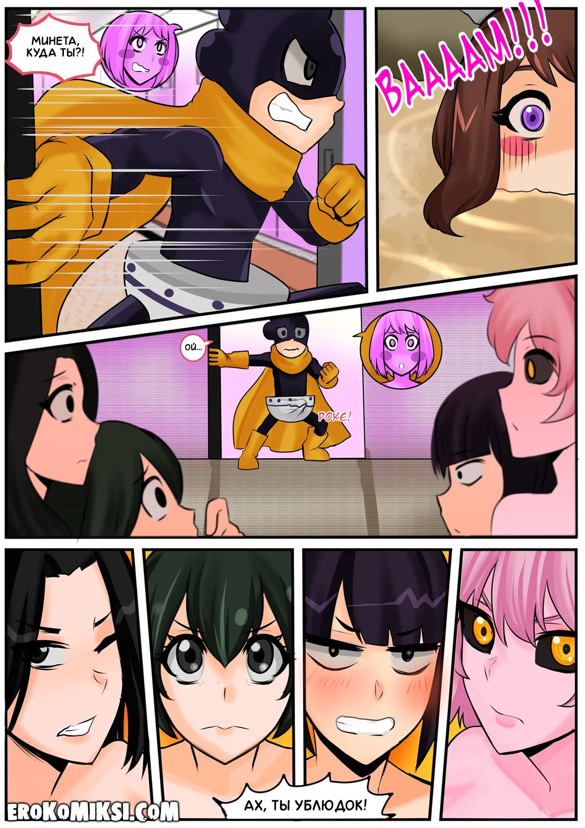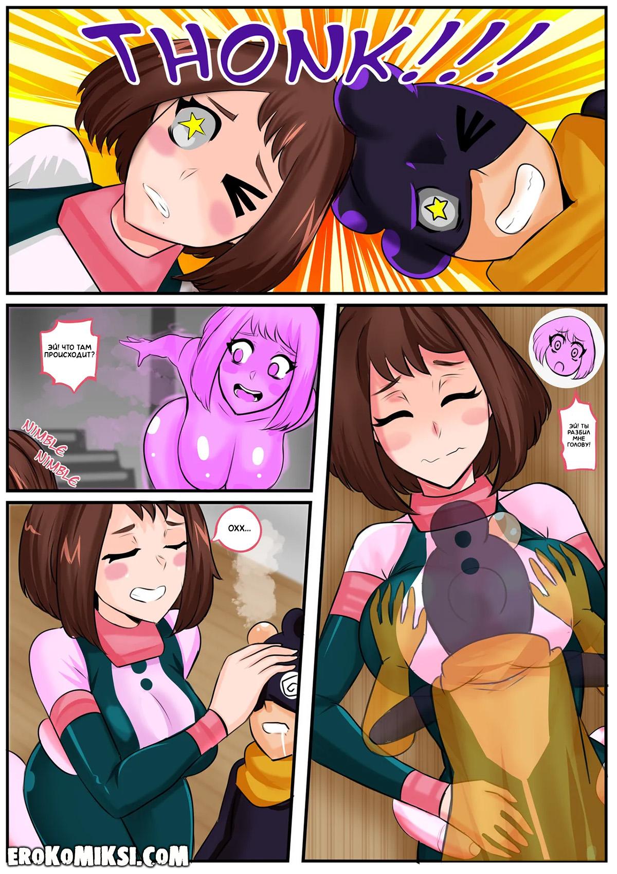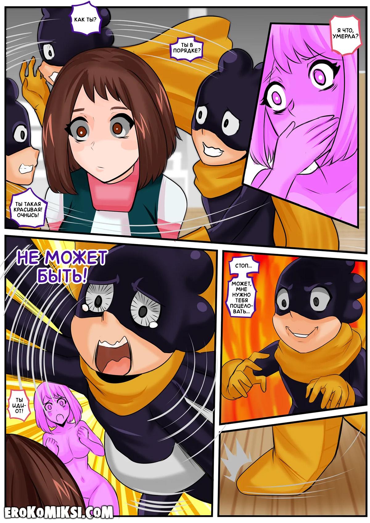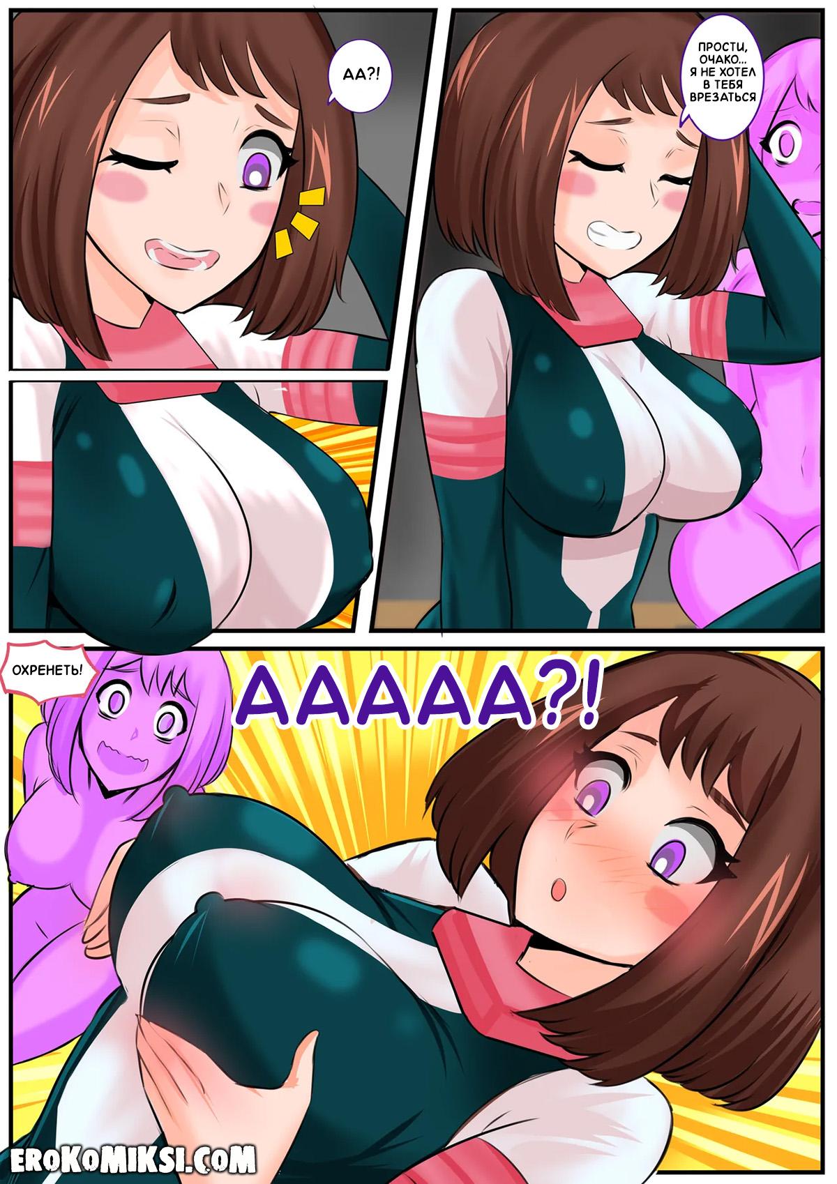 Секс комикс Моя геройская академия. Виноград в моей голове. Поменявшись телами с Очако, Минета решил не упускать такую возможность, и реализовать свою давнюю мечту – увидеть голыми девчонок академии, поэтому отправился в женскую душевую…
