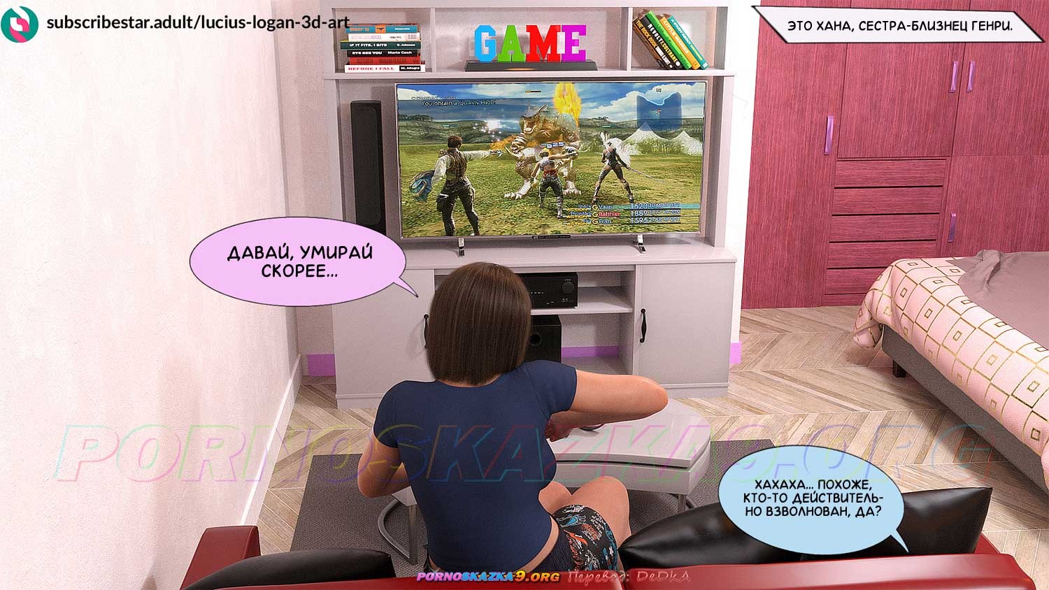 Секс комикс Моя новая подруга. Часть 1. Генри, которого мы знаем по комиксу «Моя новая работа», приезжает домой, где его ждет его мать и его сестра близнец Хана…