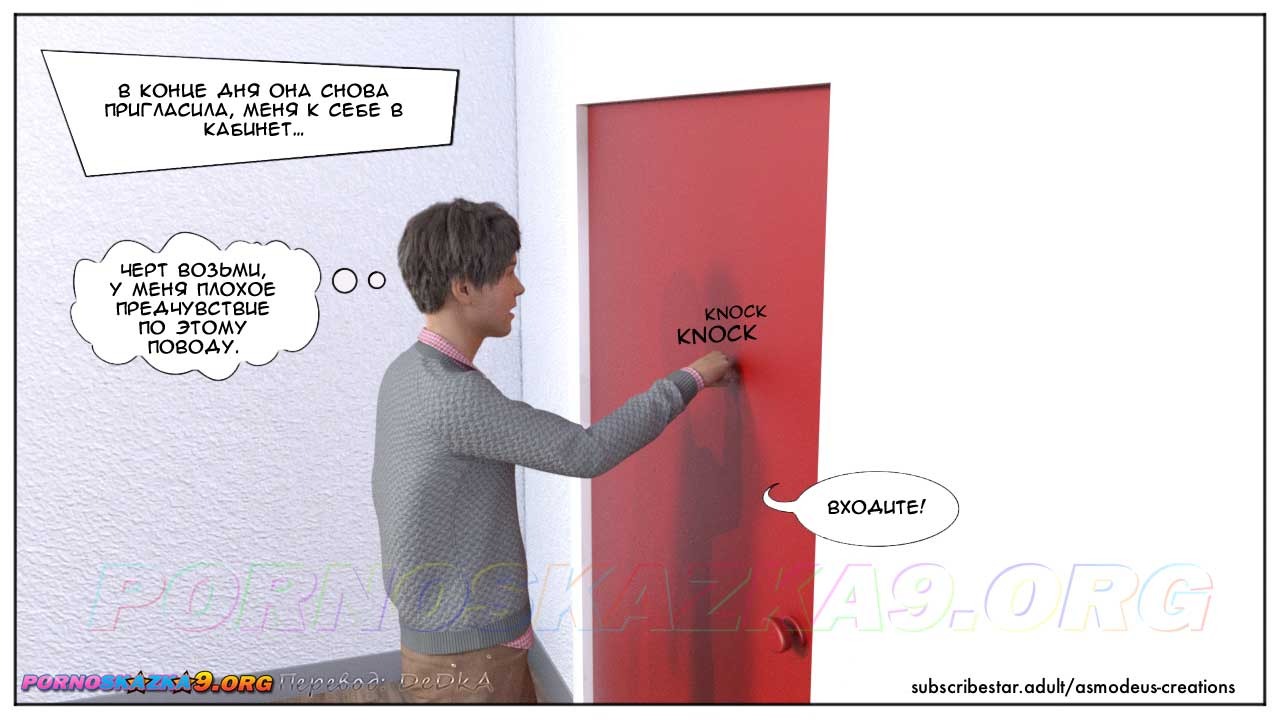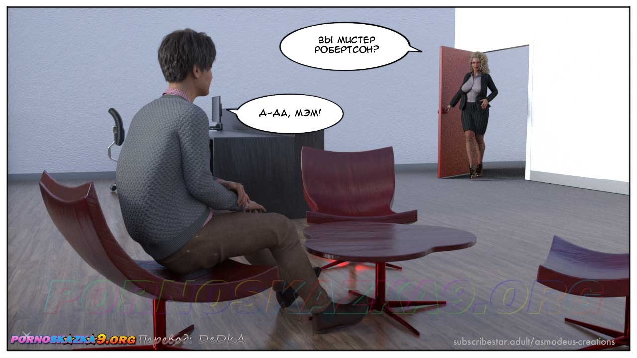 Секс комикс Моя новая работа. Часть 1. Генри Робертсона приняли на работу, и в первый же рабочий день его вызвала к себе начальница, которая без острой необходимости никогда не вызывает подчиненных к себе в кабинет…