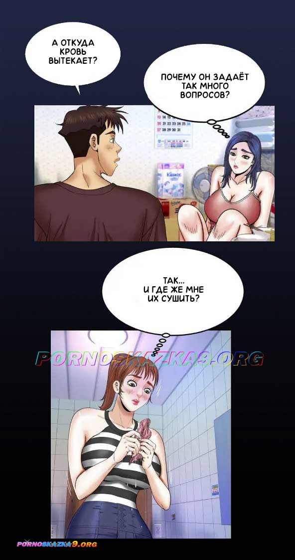 Секс комикс Моя тётя. Часть 26. Без цензуры!!! Рейчел пребывает в шоке от поведения Майка, а когда узнаёт, что её мать с ним трахалась, то вообще потеряла дар речи. Ночью все кроме Рейчел уже уснули, но она мучилась из-за жары. Она решает немного охладиться в душе, а по возвращению в комнату, она замечает гигантский член Майка и представляет, что такой член хорошо бы подошёл её киске, ведь у неё широкая киска и парни не могут спокойно заниматься с ней сексом…