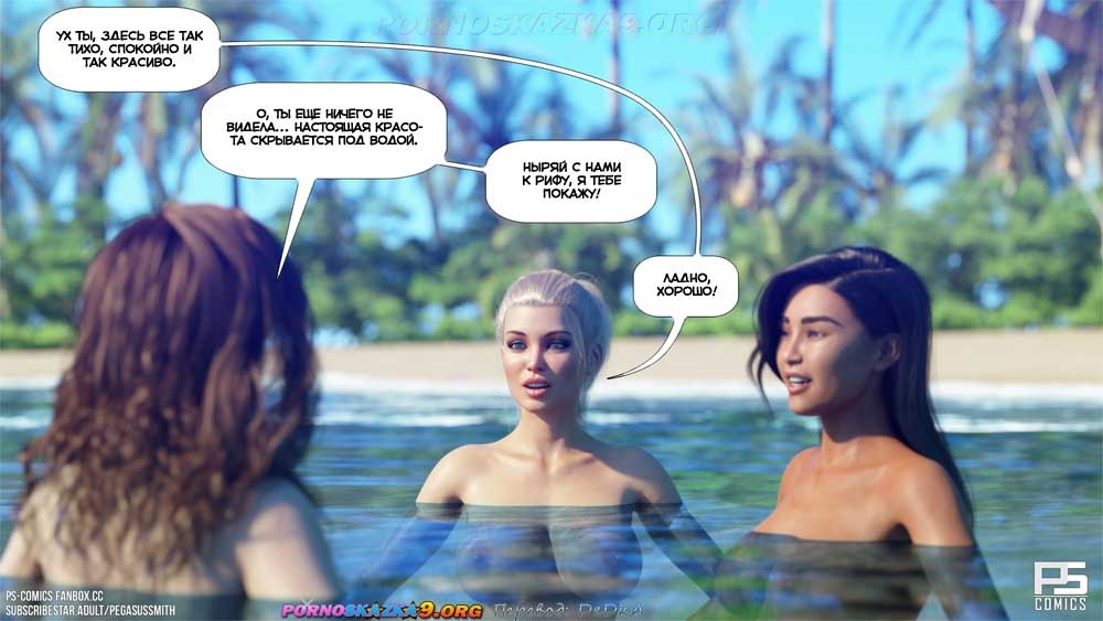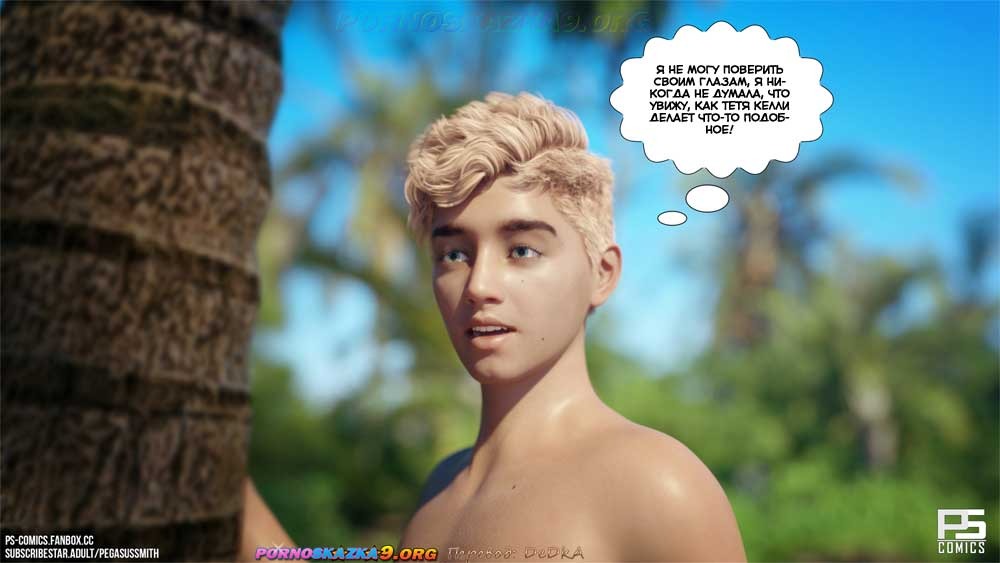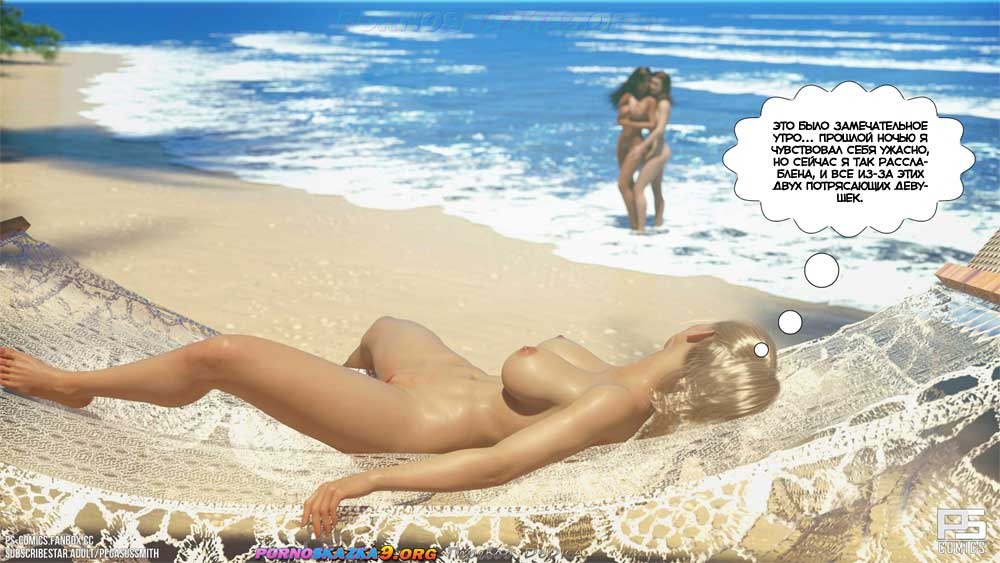Секс комикс Нагишом. Нудистский курорт. Часть 17. Узрев оргию в Джунглях, Келли совершенно обалдела. В таком шоковом состоянии две сексуальные островитянки и вывели ее из джунглей к берегу океана…