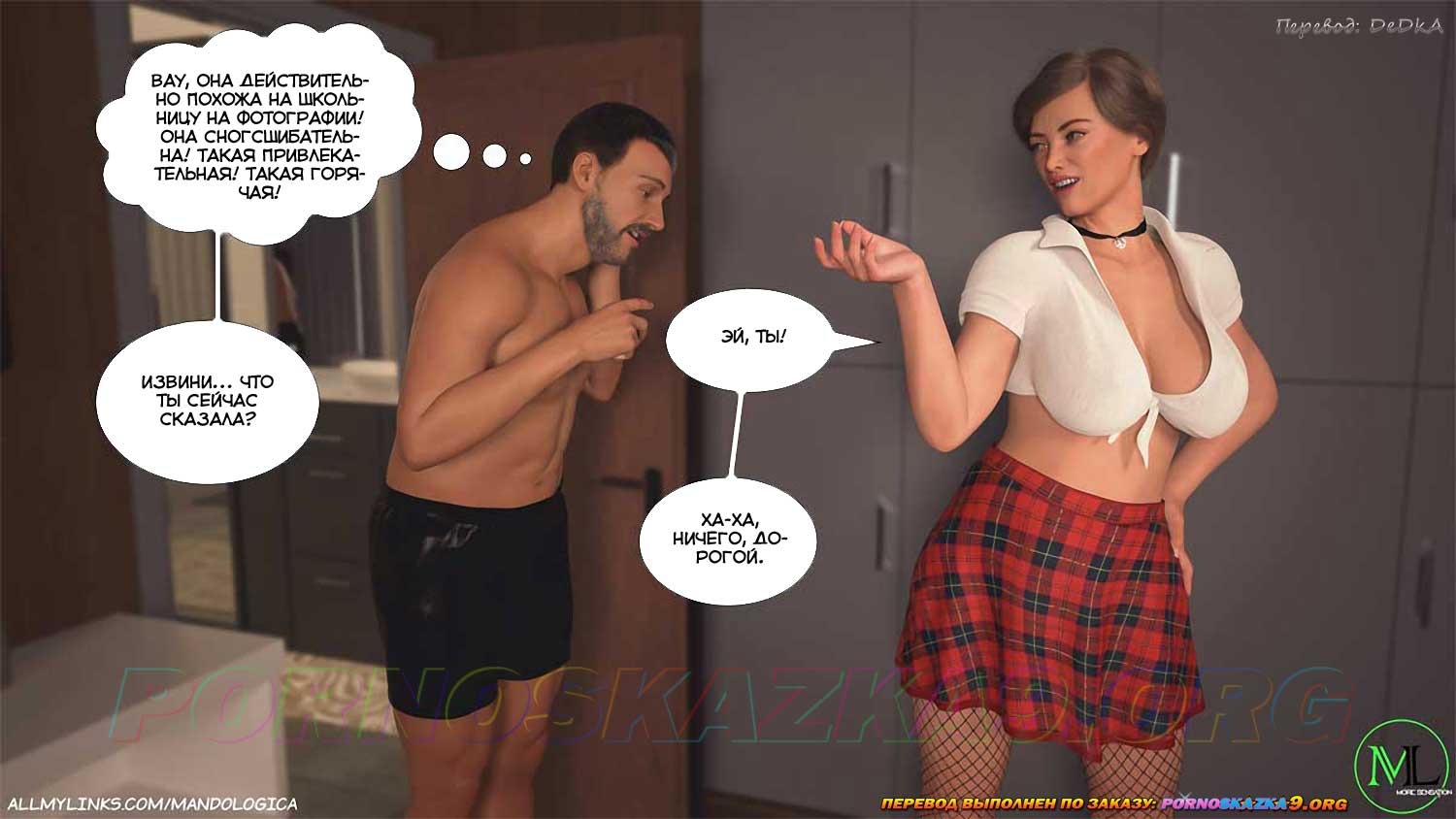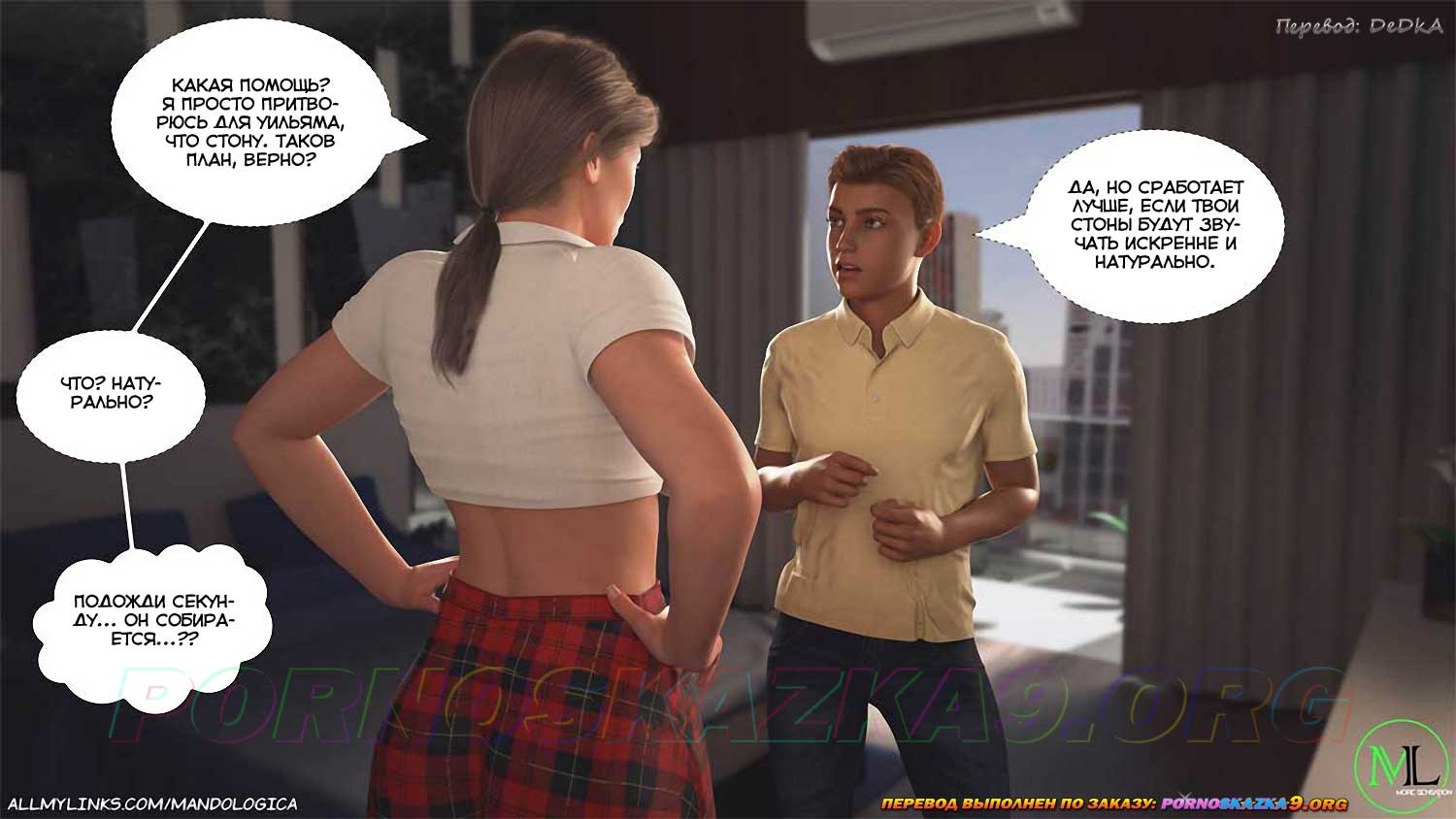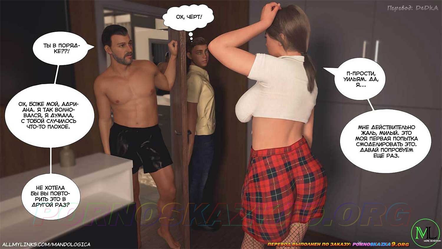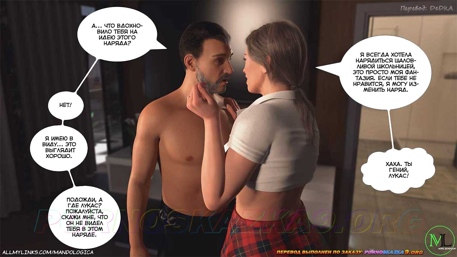 Секс комикс Нарушая границы. Часть 8. Лукас убедил Адриану нарядиться школьницей, так, как он видел в телефоне Уильяма, и в таком виде показаться Уильяму. Что из этого вышло, прочтите сами…
