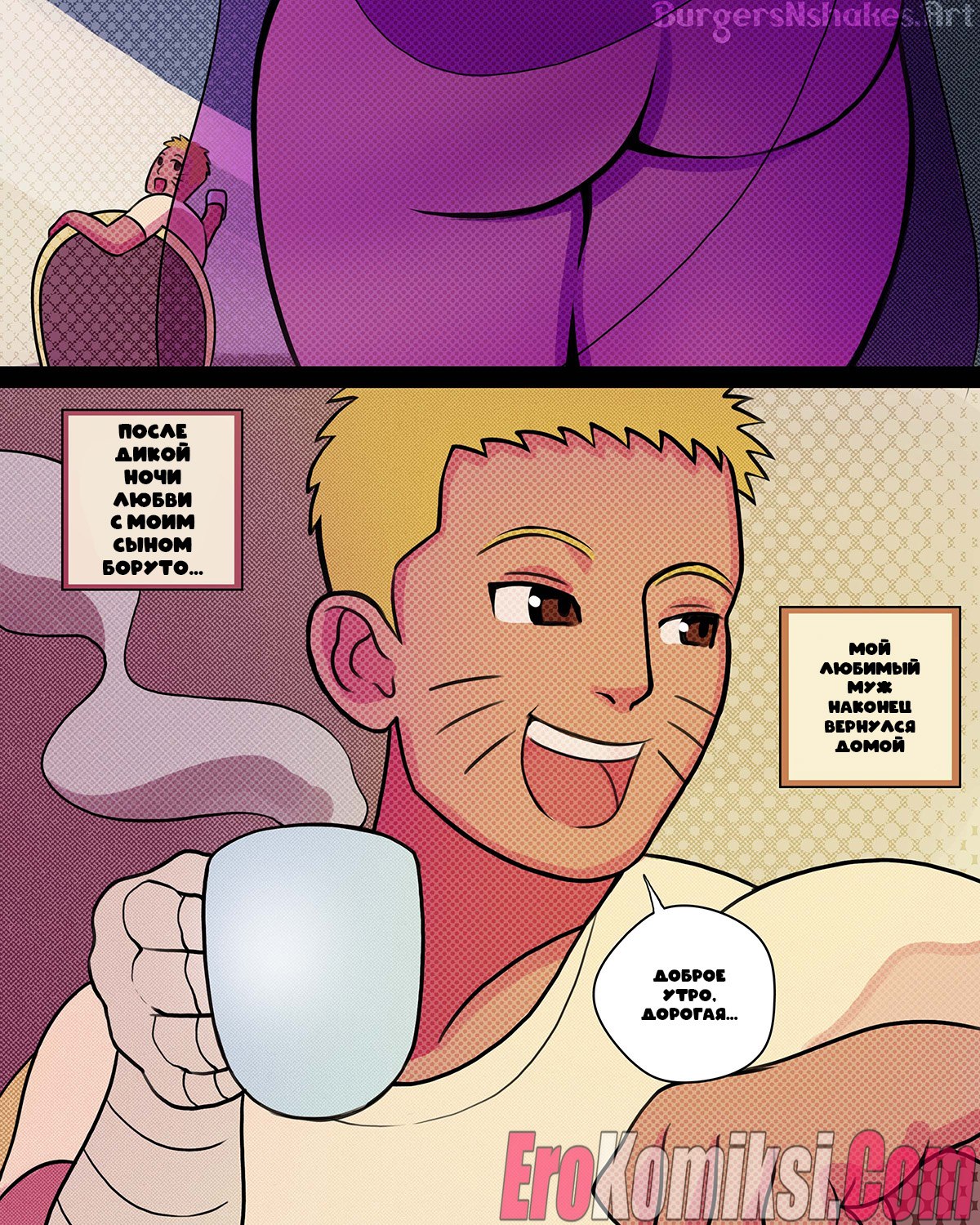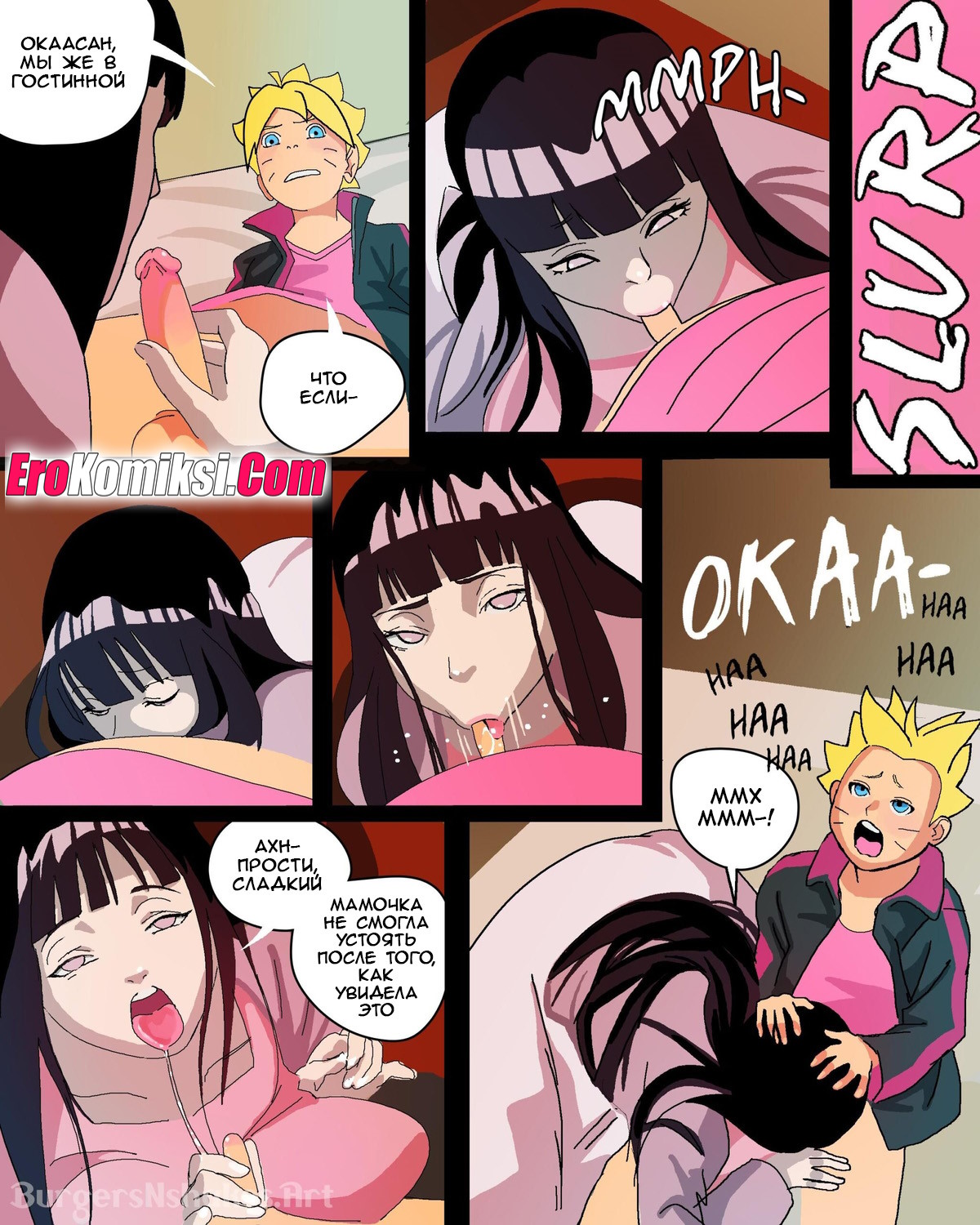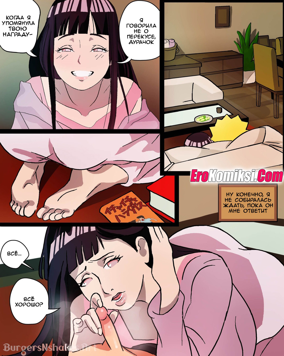Секс комикс Наруто. Хината и Боруто. Часть 2. BurgersNShakes. Hinatas Addiction. Boruto Красотка Хината невероятно рада возвращению своего мужа. Красотка скорее разделась перед парнем и стала сосать его большой хуй, после чего дала ему себя выебать во все дырочки.