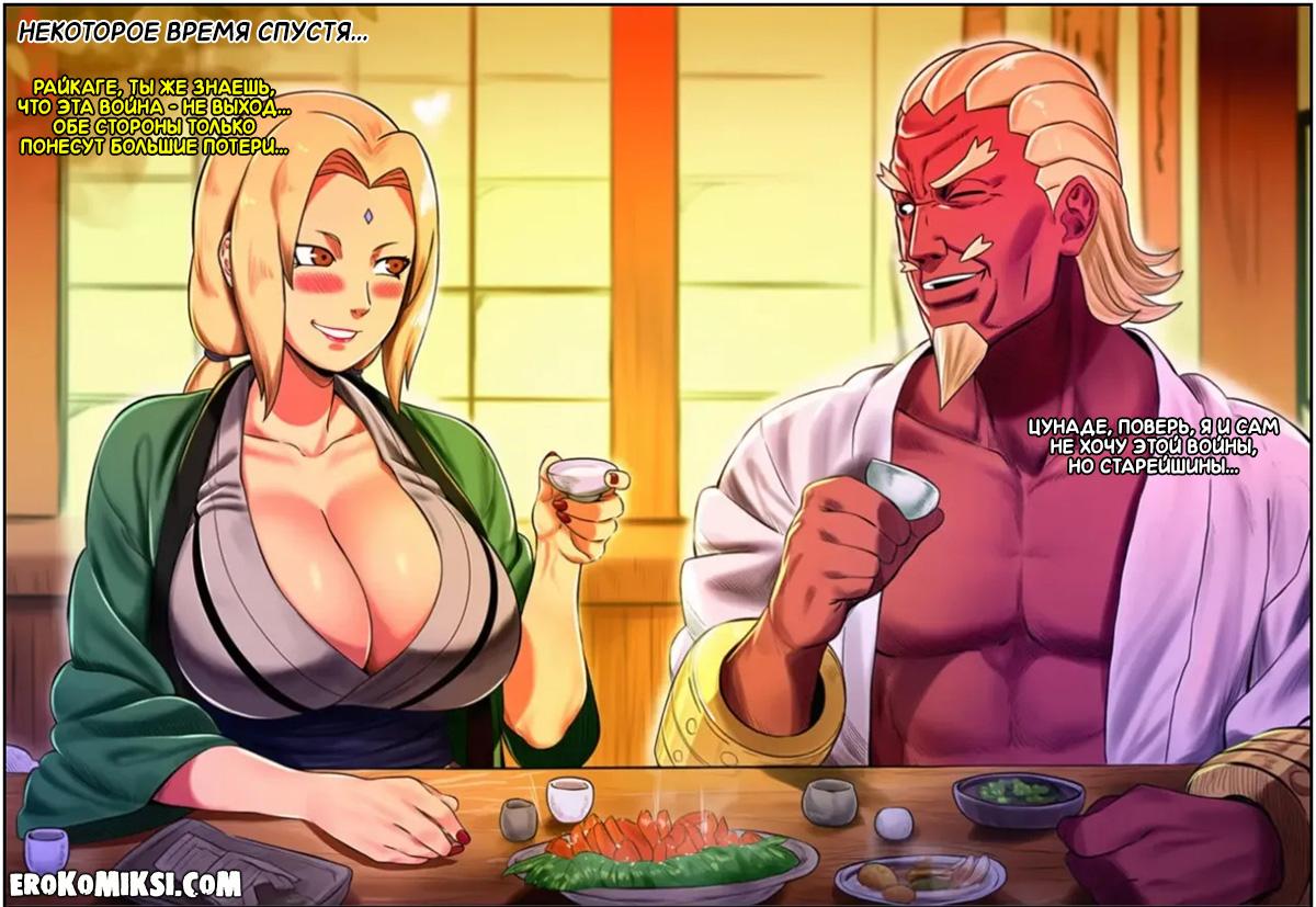 Секс комикс Наруто. Невероятные приключения Райкаге в Конохе. Часть 1. Райкаге отправили в Коноху, так как намечается война деревень, но обсудив с Цунаде предстоящую войну за несколькими бутылками саке, они пришли к выводу, что война не нужна обеим сторонам, а затем как следует потрахались, чтобы закрепить своё решение…
