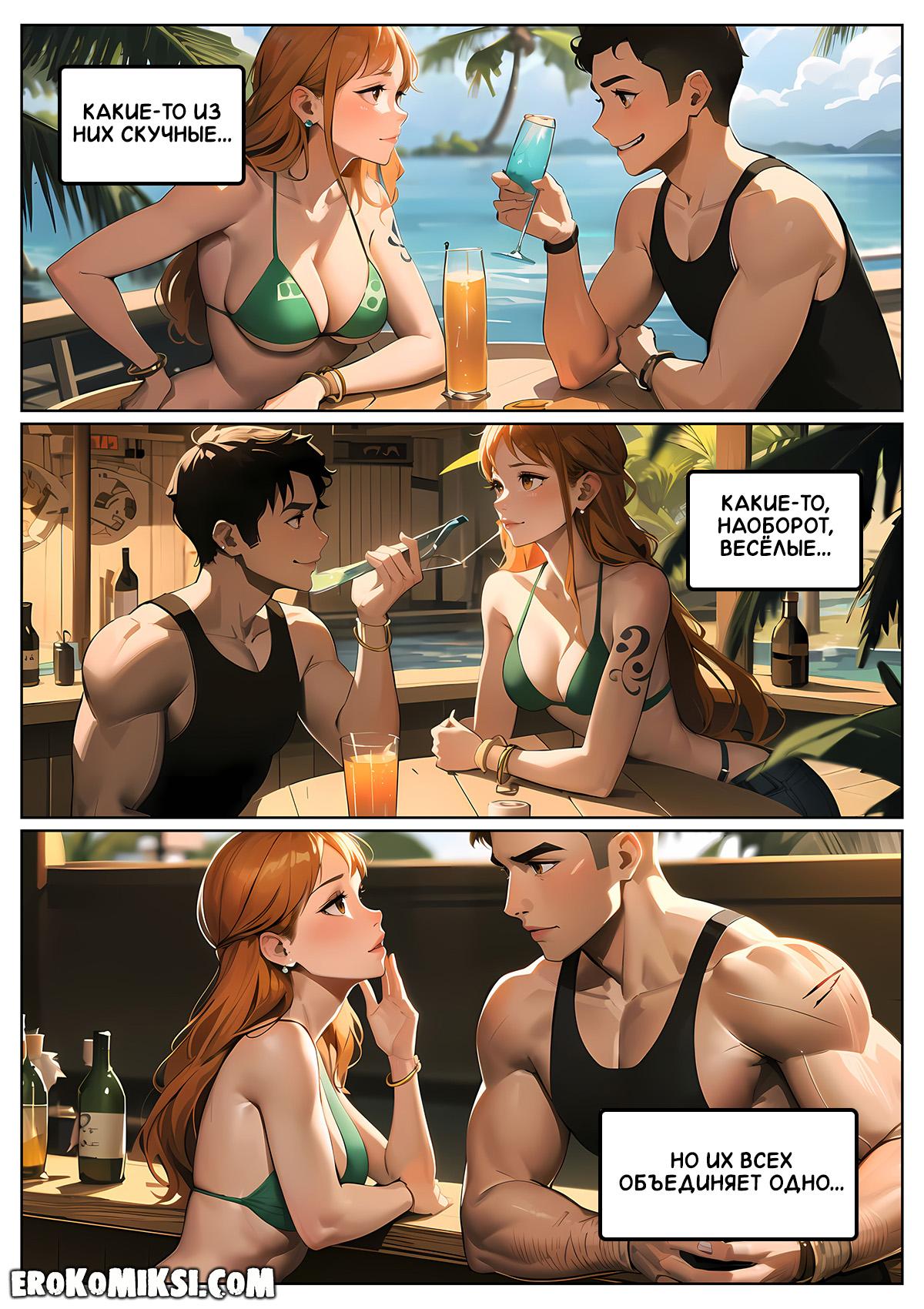 Секс комикс One Piece. Женские потребности Нами. Каждый раз, когда корабль Нами заходит в порт, красавица отправляется в бар, где подцепляет парня, а иногда и не одного, чтобы они как следует оттрахали её тугую киску и удовлетворили её сексуальные потребности…