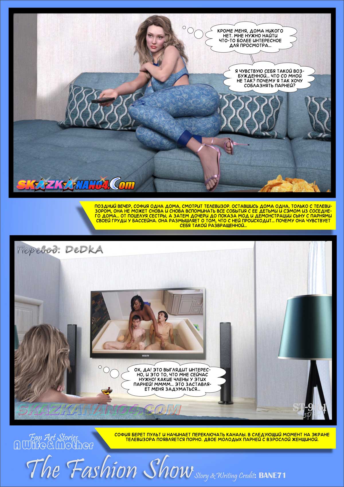 Секс комикс Падение Софии. Часть 1. Показ мод. Краткая версия. Дилан и его друг, Сэм, не питают больших надежд на то, что им удастся уговорить Софию сыграть для них роль известной модели нижнего белья, Скарлет, и устроить для них шоу с демонстрацией бикини. Каково же было их удивление, когда София согласилась на это, что называется, с полуслова. Почему же она так быстро согласилась?