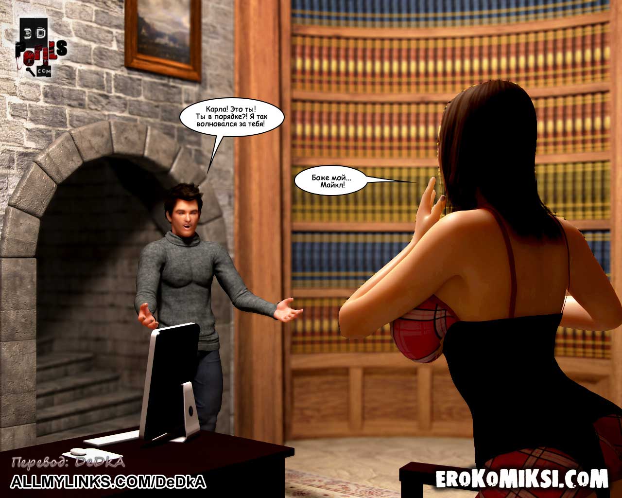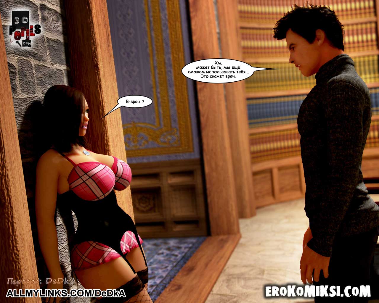 Секс комикс Похищение. Часть 7. Начальник тюрьмы. Проведя свою первую ночь в странной частной тюрьме, героиня комикса была вызвана к начальнику тюрьмы, где её ожидал совершенно невероятный сюрприз! В кабинете начальника тюрьмы она увидела своего возлюбленного! Несчастная девушка решила, что он нашёл её и пришёл, чтобы освободить! Каково же было её разочарование, когда она узнала, что… Что она узнала, вы узнаете из очередного эпизода комикса «Похищение» — Начальник тюрьмы.