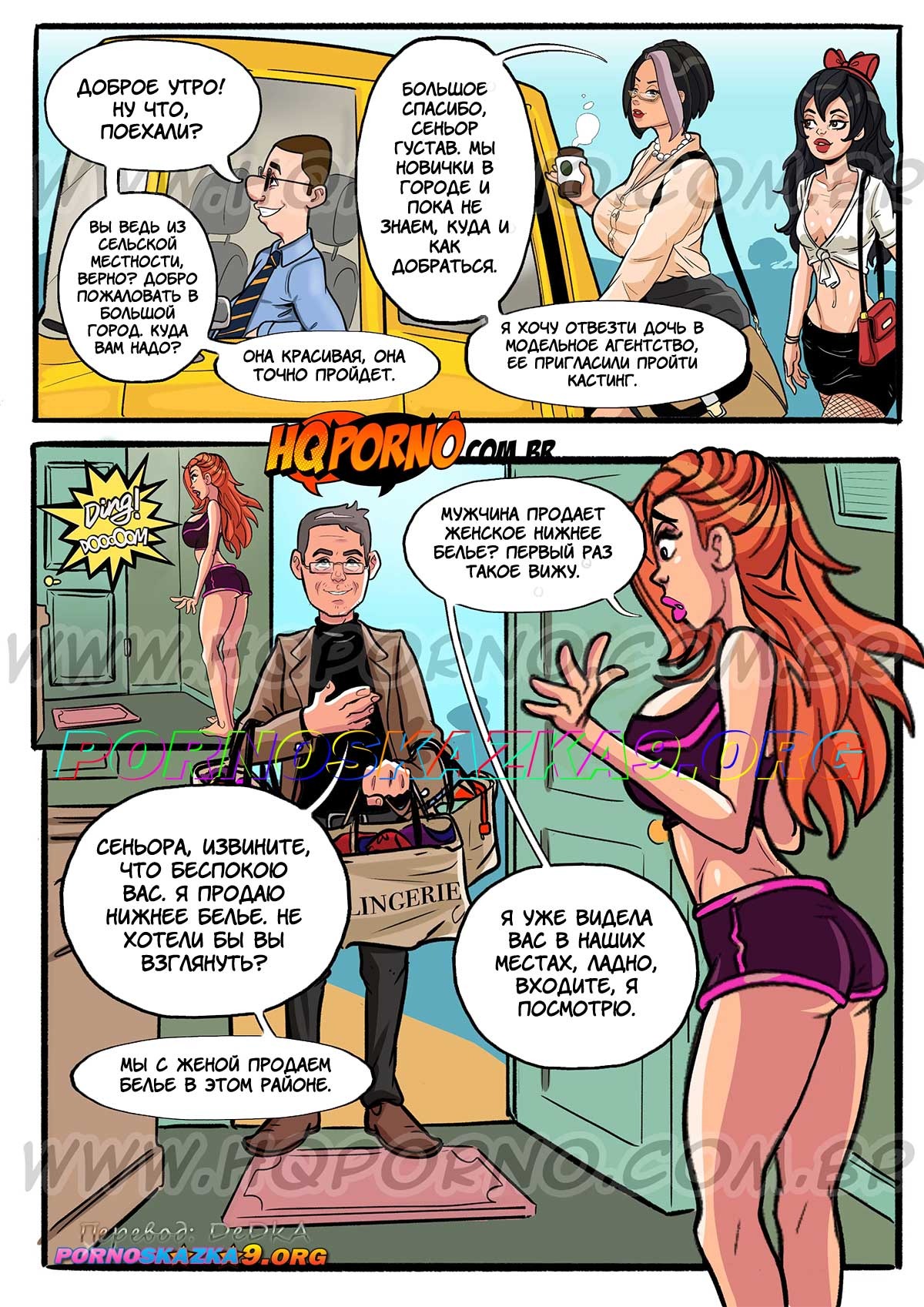 Секс комикс Развратные соседи. Часть 1: Продавец трусиков. Pecados da vizinhanca. HQporno К сексуальной рыжей милфе домой пришел продавец женского белья и девушка решила с ним повеселиться. Она разделась и возбудила его своим шикарным телом, после чего дала ему себя выебать…