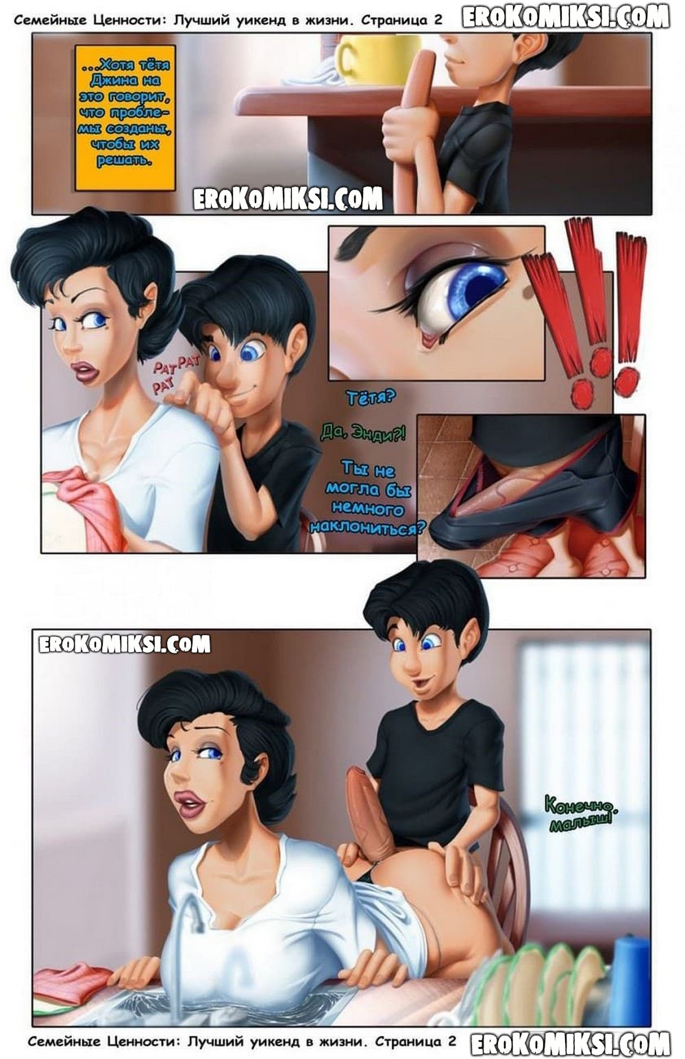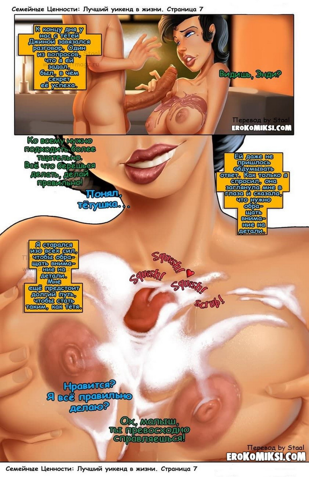 Секс комикс Семейные ценности. Часть 1: Лучший уикенд в жизни. Что нужно молодому неопытному парню в жизни? Конечно опытная сексуальная женщина, которая сможет реализовать все его сексуальные фантазии. И такой женщиной стала аппетитная МИЛФА — его тетя…