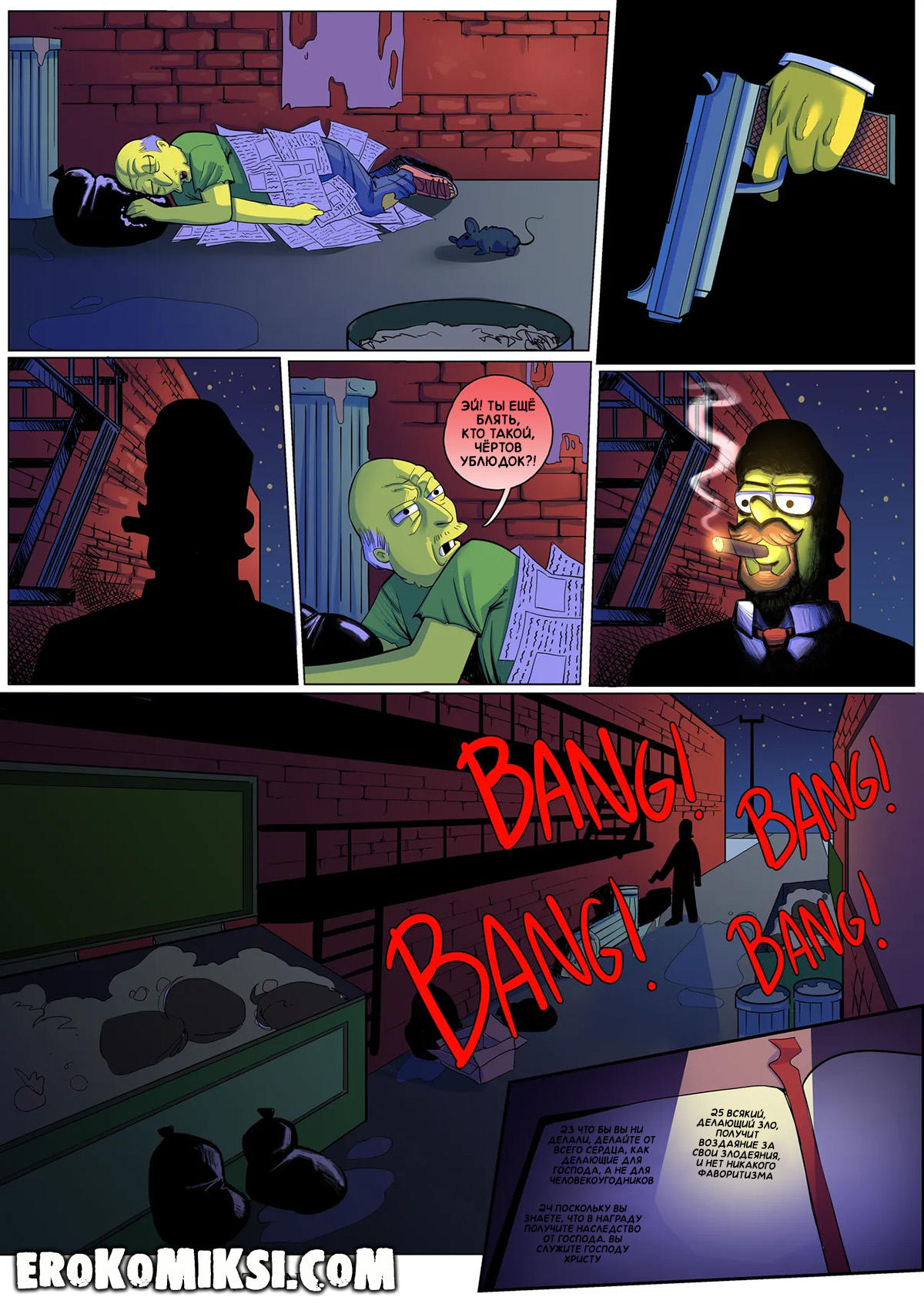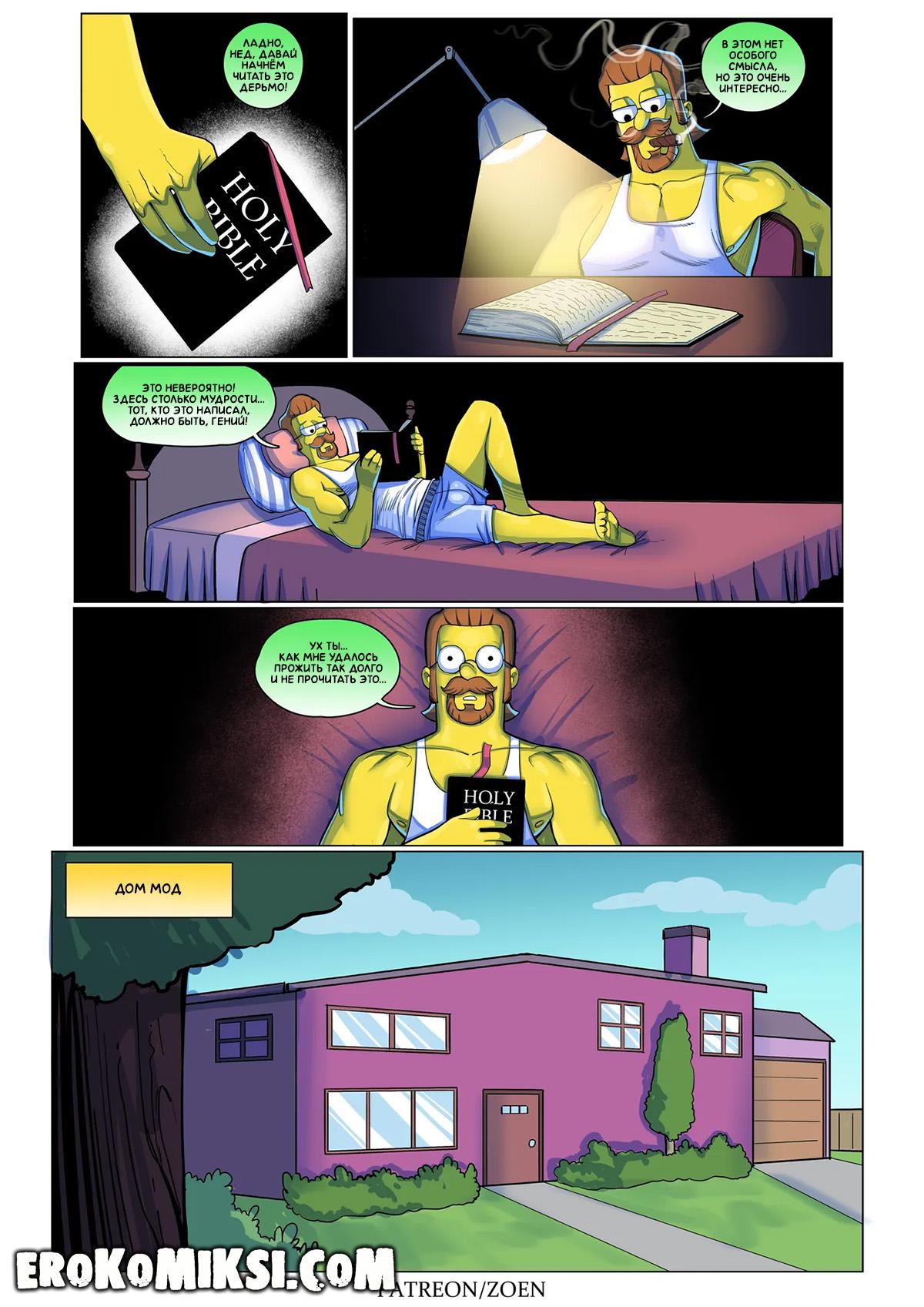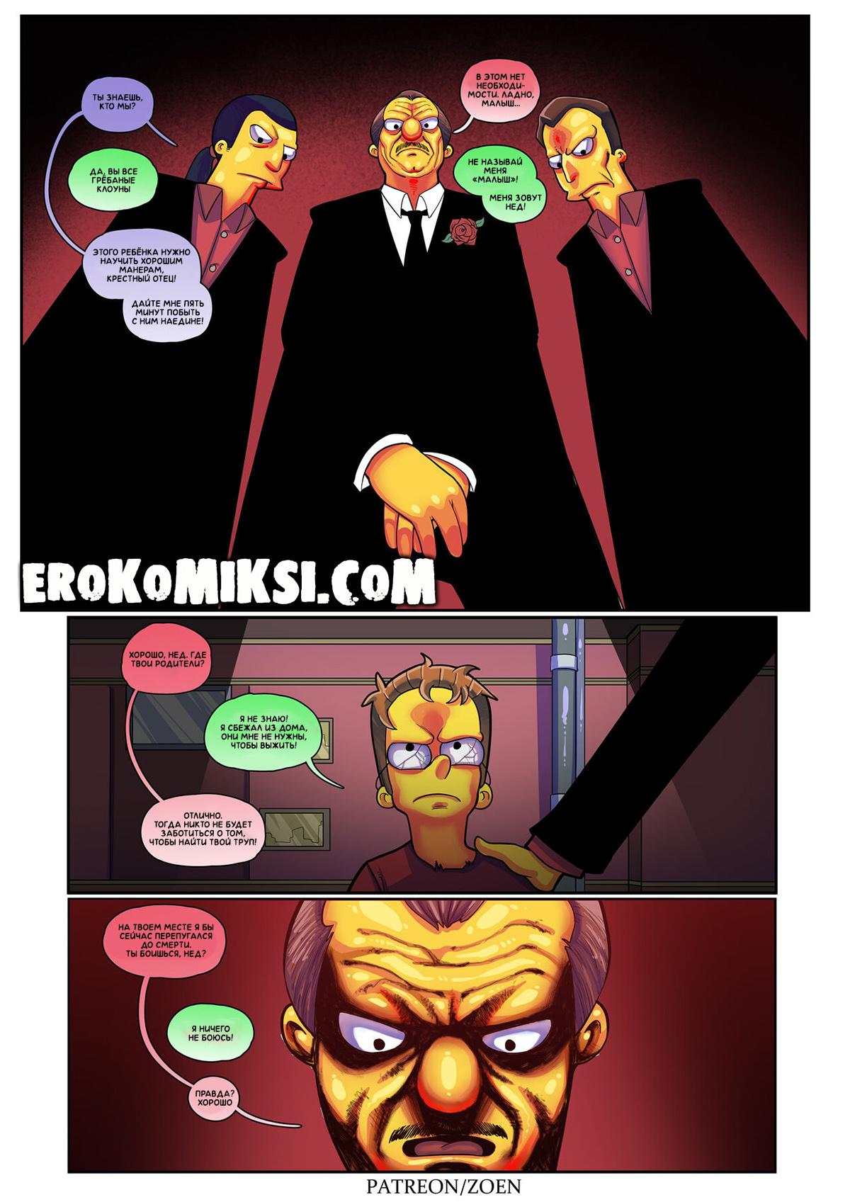 Секс комикс Симпсоны. Плохой Парень. Это история Неда Фландерса, у которого есть любимая красавица жена, послушные дети, счастливая жизнь…Но так было не всегда… В детстве, Нед сбежал из дома, потому что устал от постоянных ссор с родителями и оказался на улице. Он выживал как мог, он воровал еду, чтобы выжить в реалиях улицы и однажды, Нед украл не у тех людей и этот случай навсегда изменил его жизнь…
