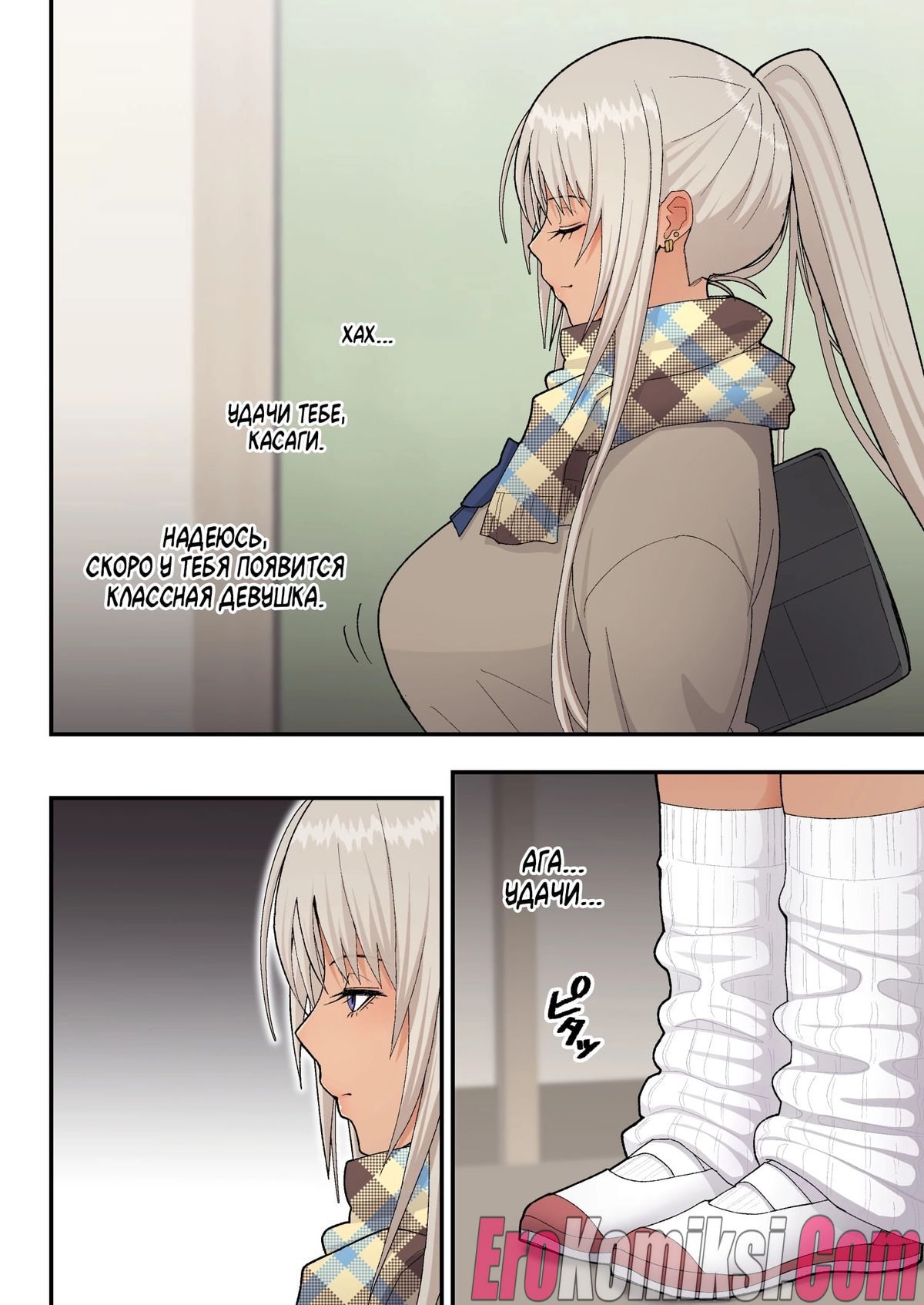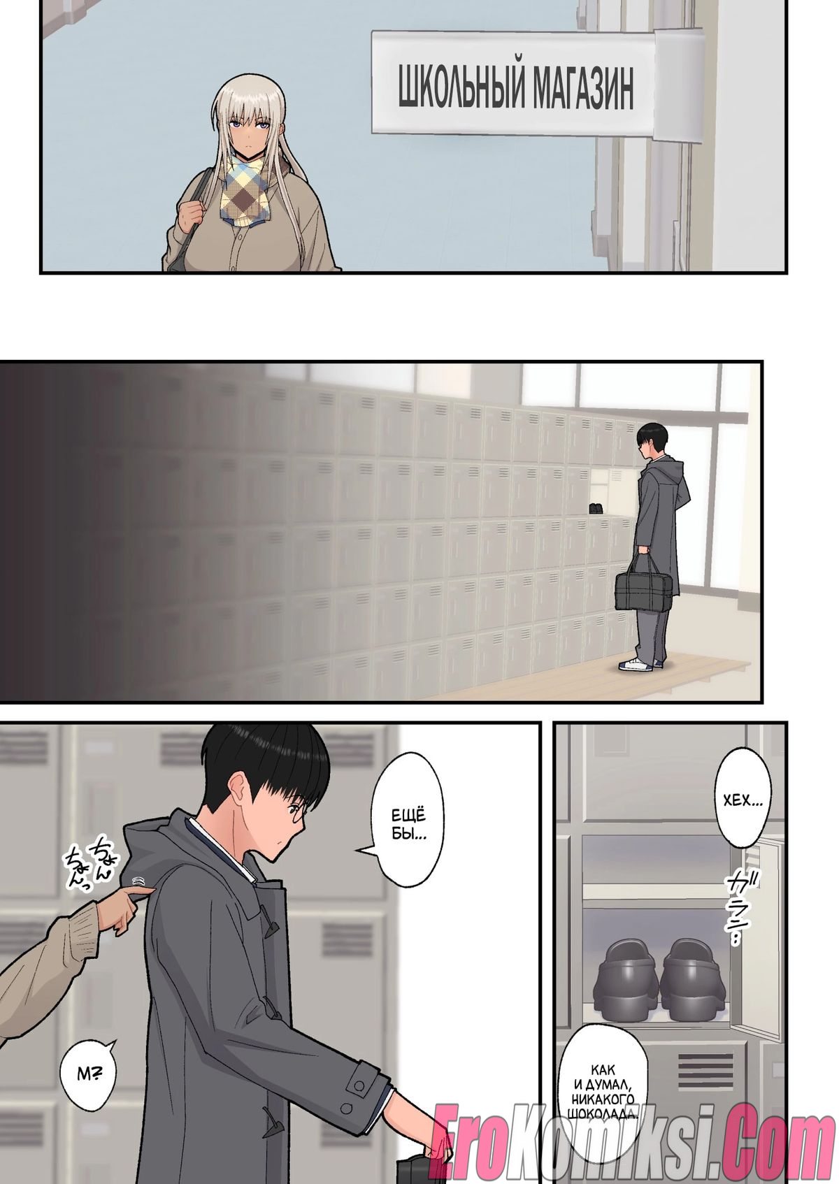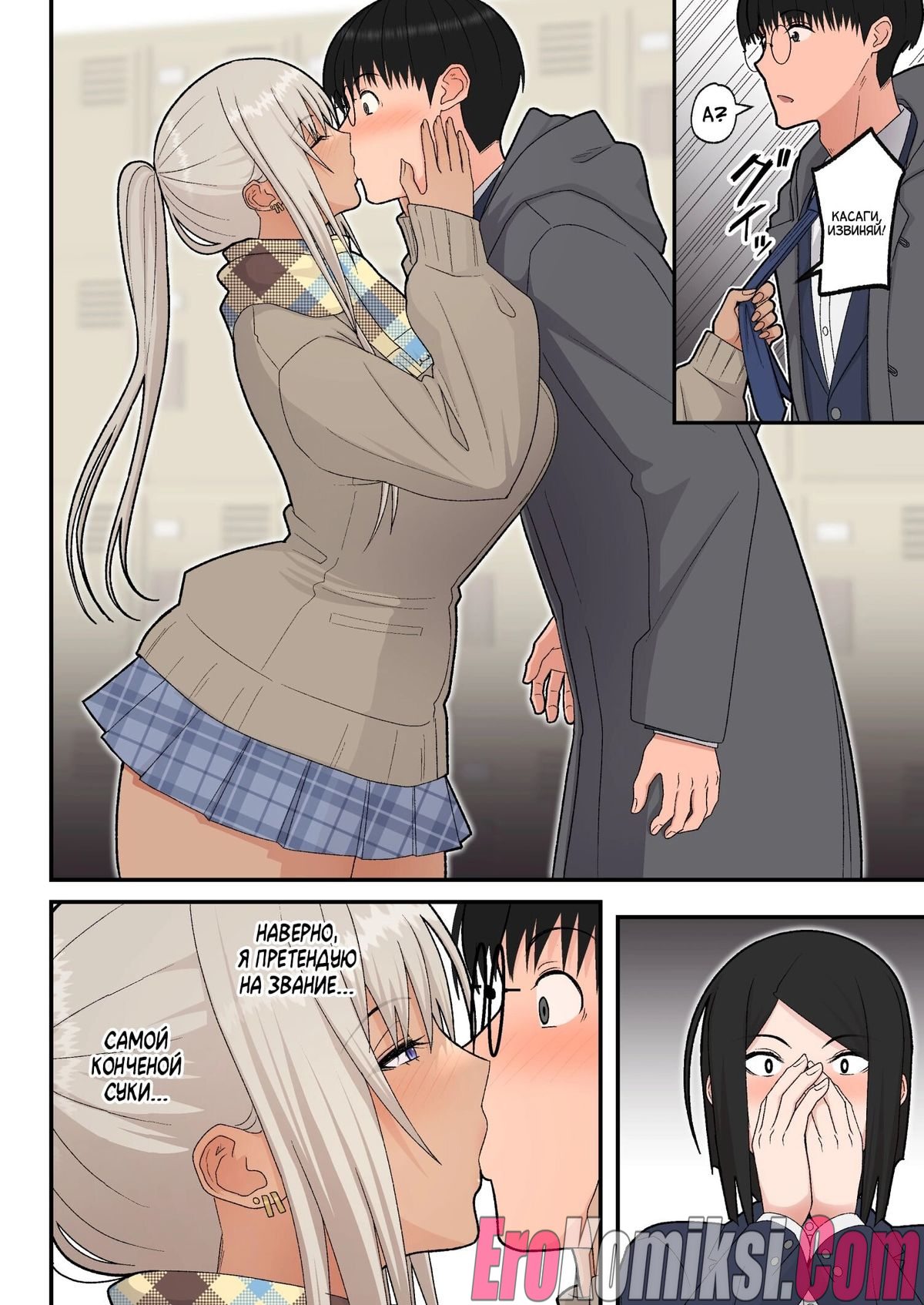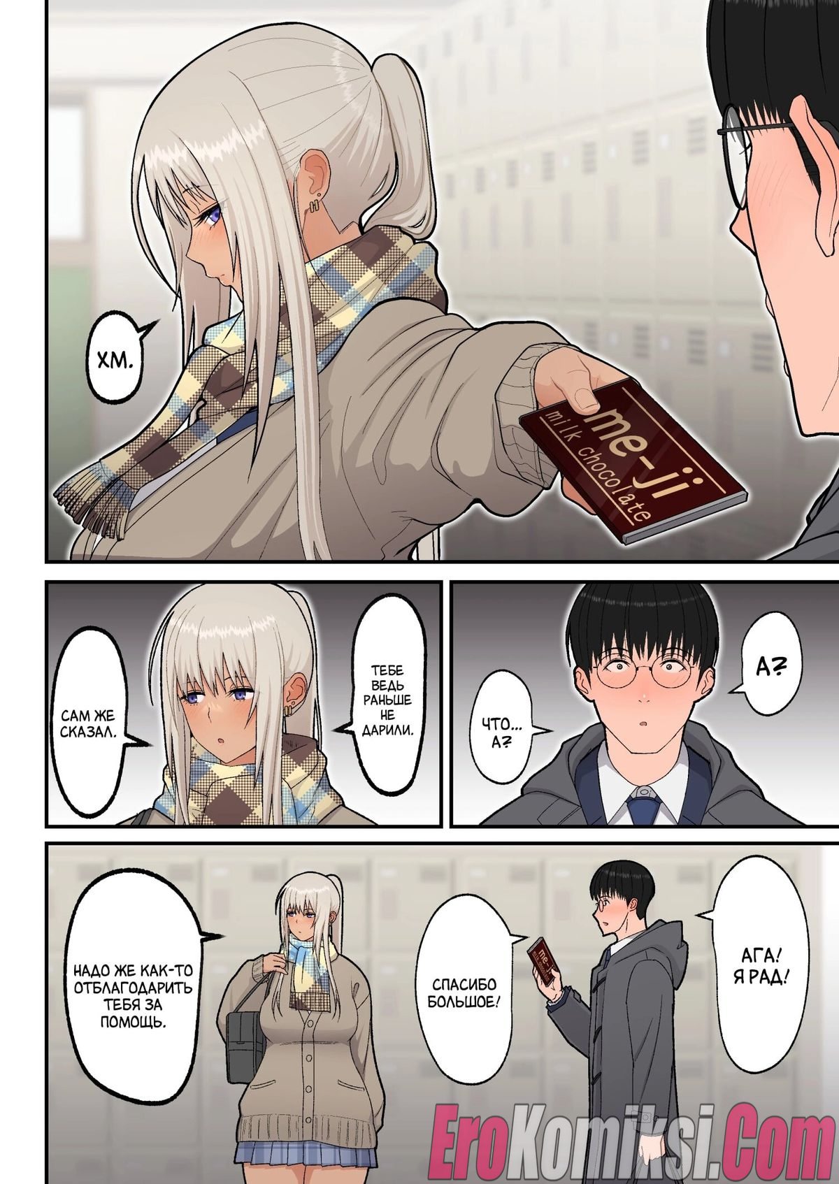 Секс комикс Сладкая любовь с гяру-блондинкой. Когда Мина узнала, что провалила экзамен и повторный, это её последний шанс, она обратилась за помощью к однокласснику Хидеки. Парень помог ей, обучил её предмету и девушка сдала экзамен на 75 баллов. После этого она решила поблагодарить Хидеки и отправилась с ним в любовный отель. Там Хидеки впервые занялся сексом с девушкой…