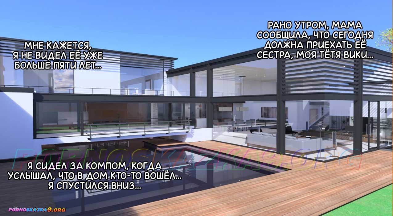Секс комикс Тетя Вики, изменившая нашу жизнь. Глава 1. Часть 1 из 2. Пита и его маму Кэтрин, навещает сестра Кэтрин, Вики. Вики очень красивая женщина, с большой грудью и задницей, работающая моделью. Пит, из-за бушующих гормонов, не может спокойно смотреть на тётю, у него то и дело встаёт член. Вики это замечает и начинает заигрывать с племянником…