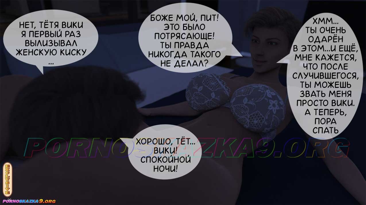 Секс комикс Тетя Вики, изменившая нашу жизнь. Глава 1. Часть 2 из 2. Сексуальные приключения между Питом и его тётей, начинают набирать обороты. Вики, раскрепощённая взрослая женщина, делиться своим многолетним сексуальным опытом со своим неопытным племянником девственником и дарит ему все радости секса…