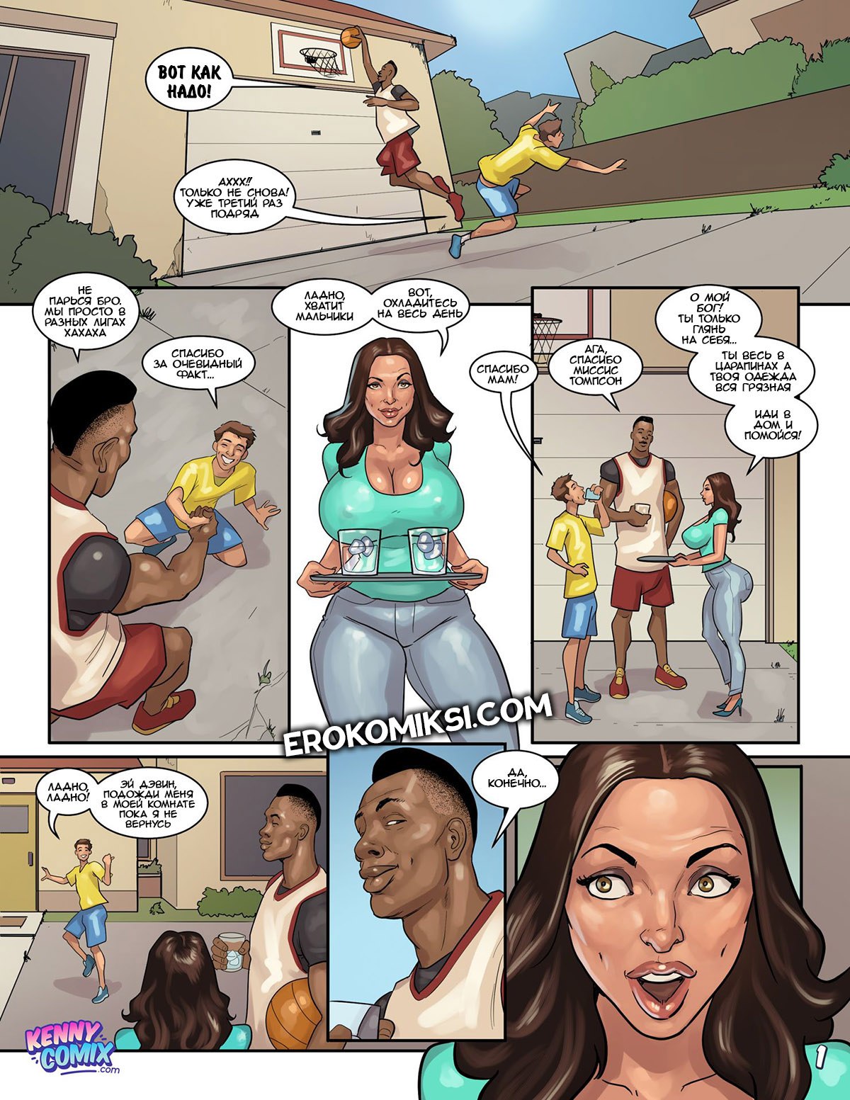 Секс комикс У Эммы новая жизнь. После переезда, миссис Томпсон начала вести похотливый образ жизни. И даже тот факт, что этот парень — друг её сына, не мешает ей трахаться и с ним…