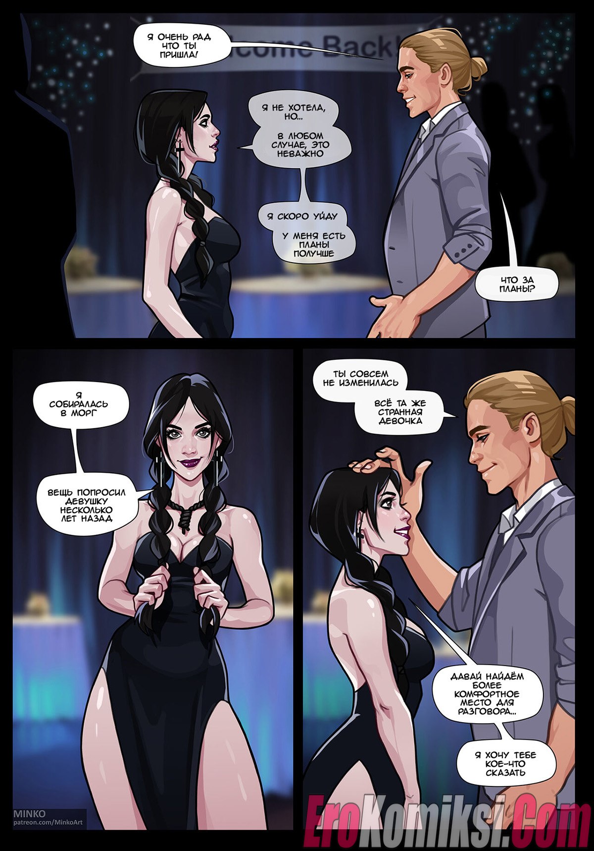 Секс комикс Уэнсдэй. Встреча выпускников. 10 лет спустя. Wednesday. Alumni meeting. Olena Minko. Горячая брюнетка Уэнздэй отправилась на встречу выпускников, где встретила своего старого дружка. Девушка уединилась с парнем и попросила ее хорошенько выебать.