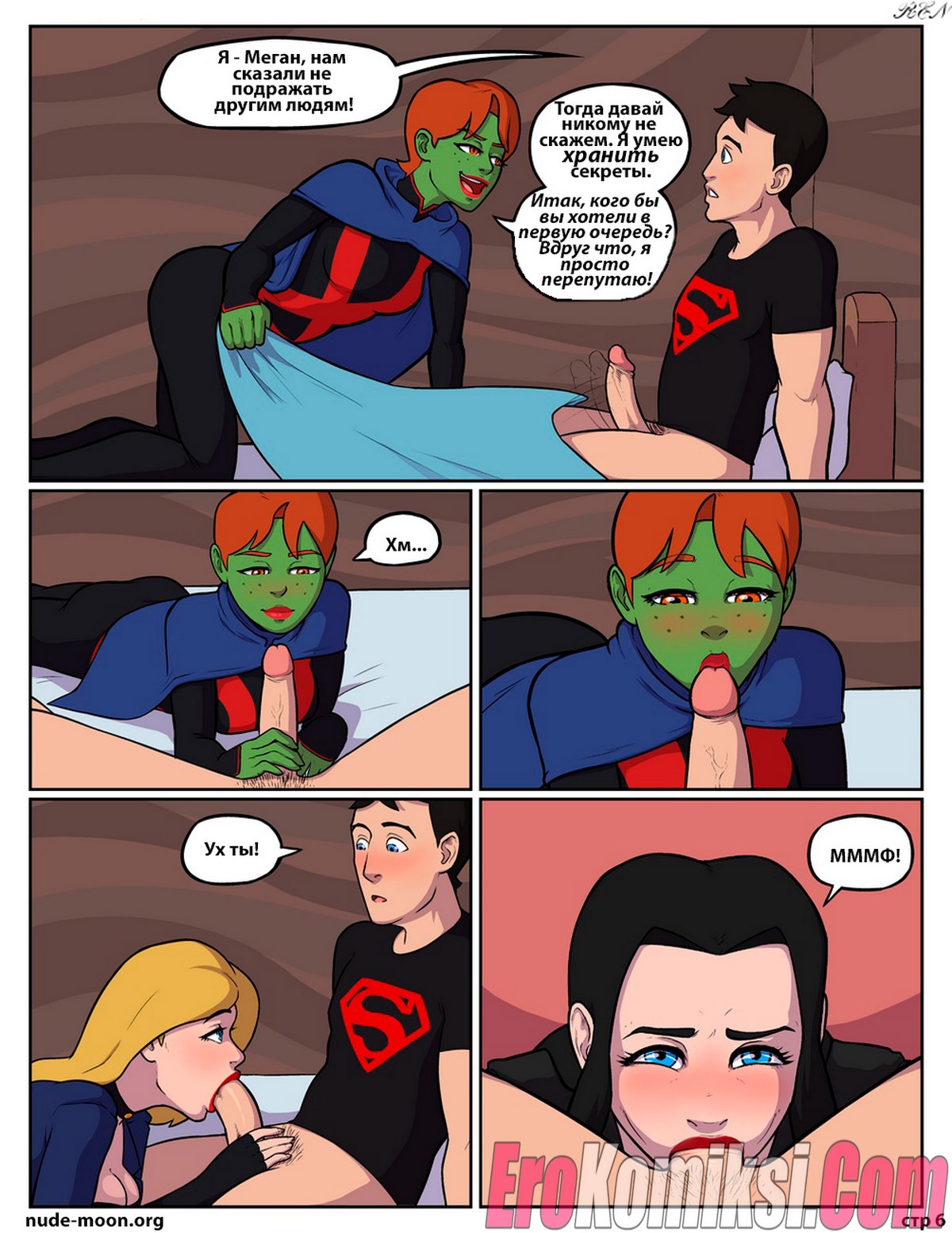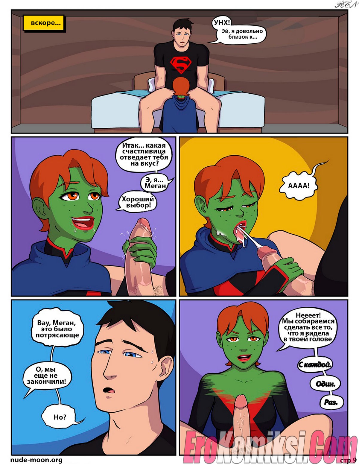 Секс комикс Юное правосудие. Вечнозелёная. Соблазнительная красотка Меган исполняет все развратные желания похотливого Супербоя, который хочет трахаться.