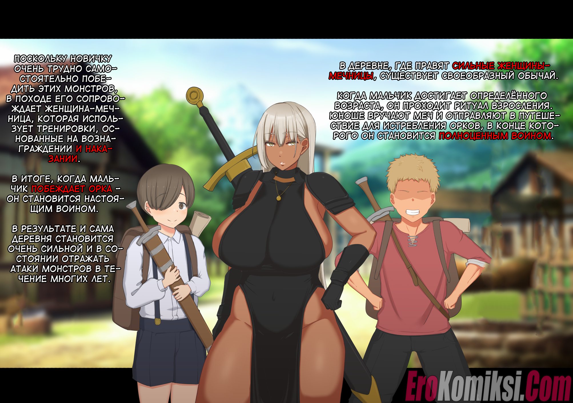 Секс комикс Женщина-мечник и два юноши. В одной деревне, где управляют большегрудые женщины-мечницы существует своеобразный обычай. Когда юноша достигает определенного возраста он проходит кое-какой ритуал взросления…