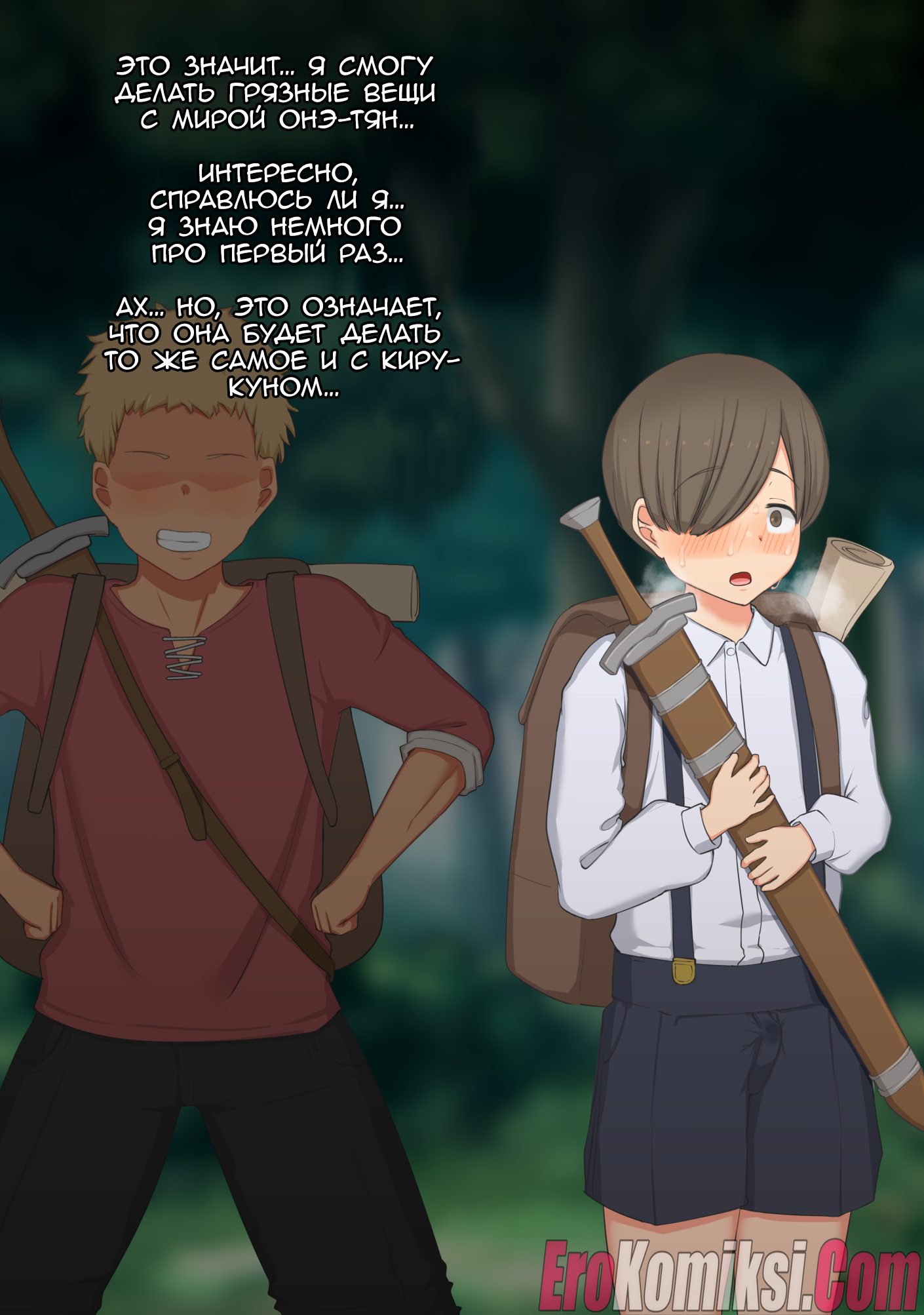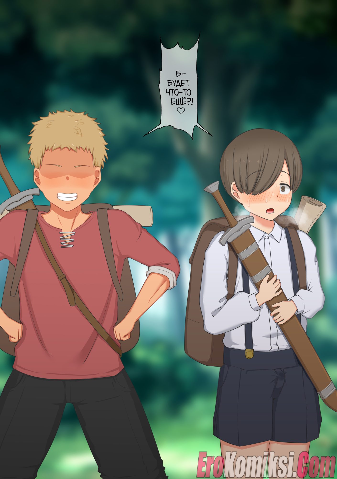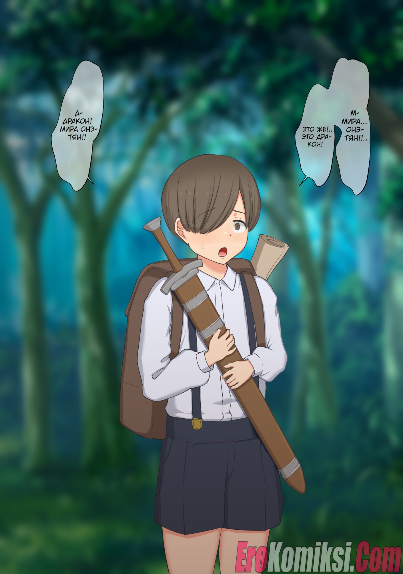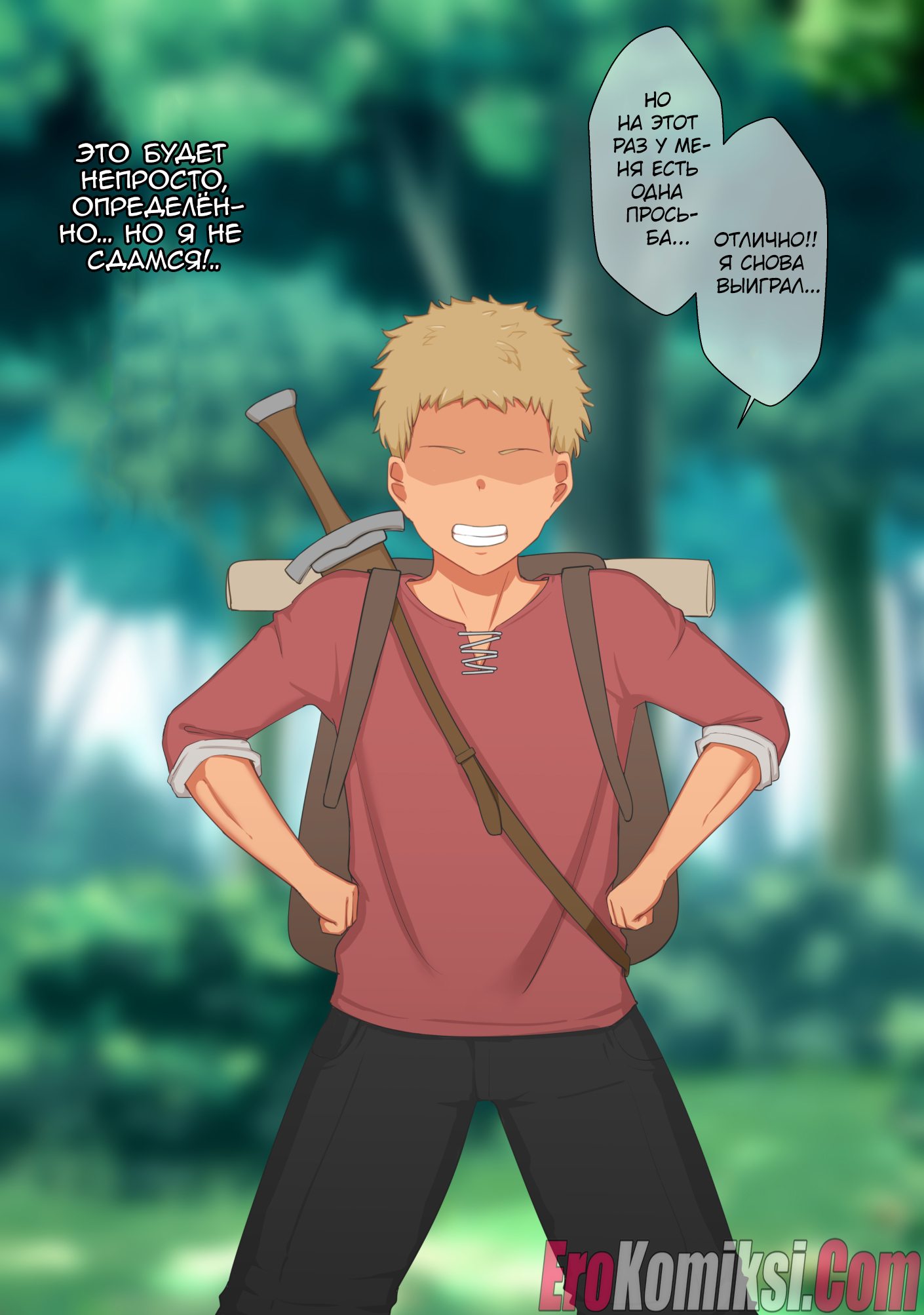 Секс комикс Женщина-мечник и два юноши.